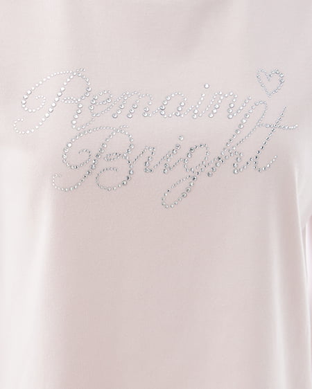 フロントにあしらった流れるような筆記体ロゴをラインストーンで表現した技ありデザイン。