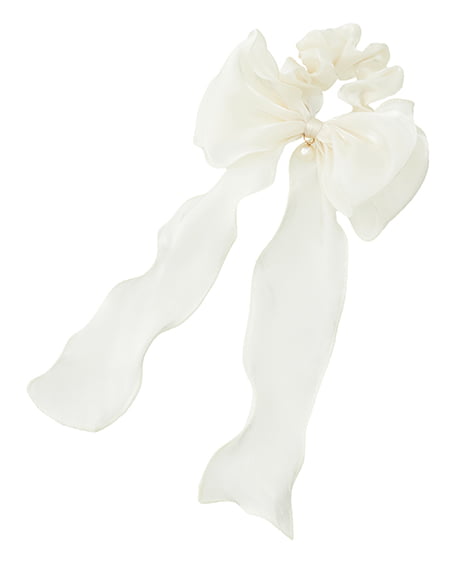 サッと付けられて使いやすいリボンデザインのシュシュです。