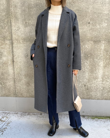 ・長めの丈感で動くとコートに動きが出るのでよりこなれた印象に。