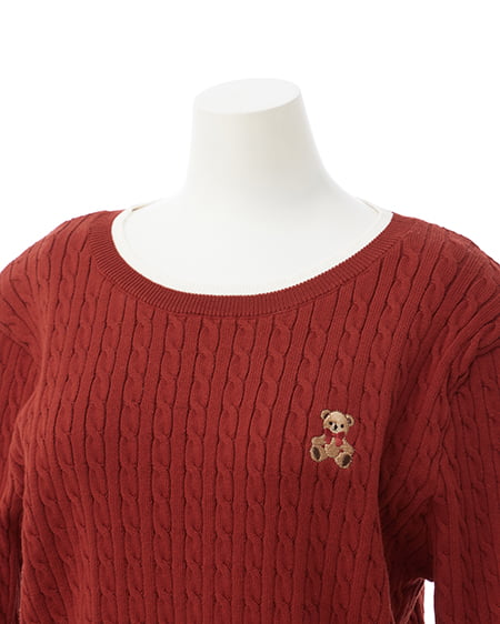 ワンポイントのくま刺繍がポイントのトレンドライクなケーブルニット。