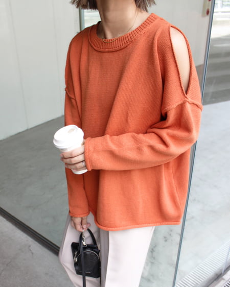 肩スリットニット