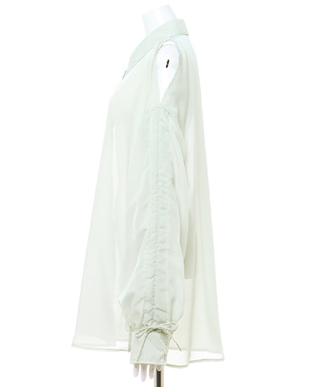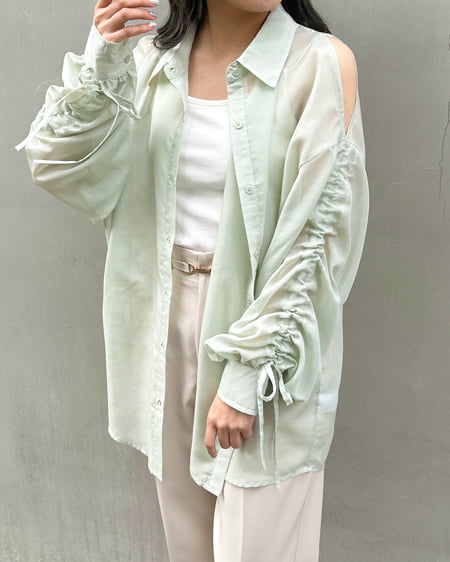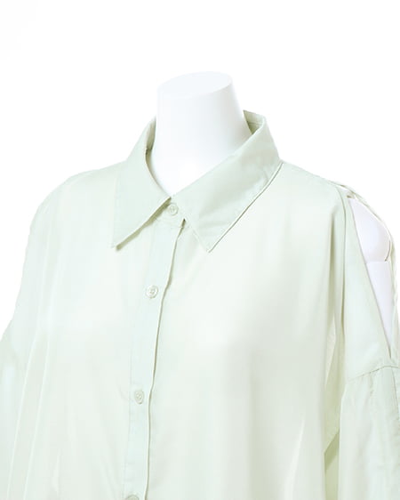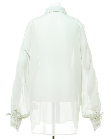 ・トレンドライクな肩スリットと透け感でヘルシーな肌見せを叶えるシアーシャツ。
