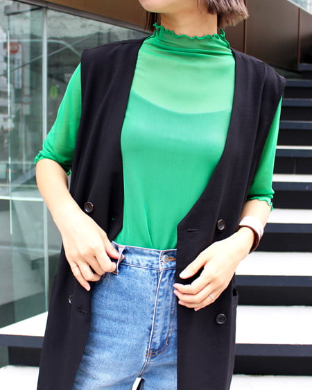 春夏の気温の高い季節にはメインアイテムとして、秋冬にはインナーとしてレイヤードの着こなしで。シーズン問わず着回しが可能なのはとても魅力的でした。