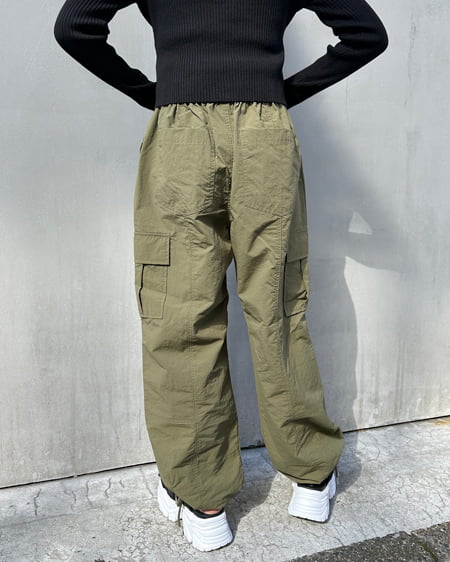 シャリ感のある薄手の生地で軽やかな穿き心地を叶えるパラシュートパンツ。