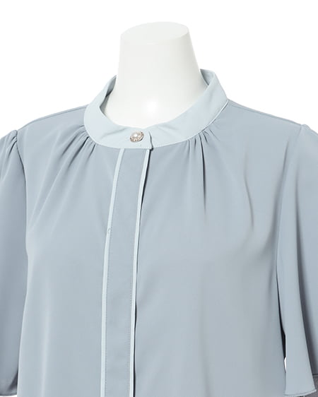 揺れるラッフルスリーブが女性らしい上品な印象に。
