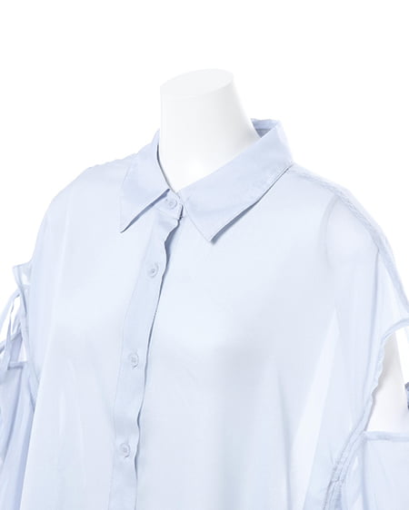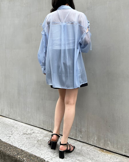 【肩スリットでトレンドみせ。1枚で映えるシアーシャツ】