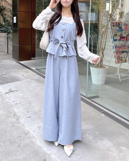 多種ボタンキャミ+ワイドパンツ/セットアップ