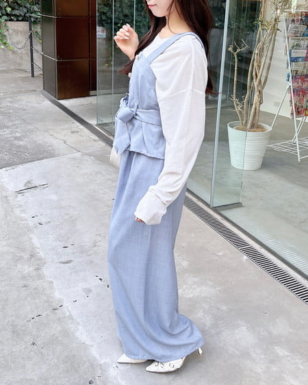 キャミソールとワイドパンツの大人スタイリッシュなアンサンブルの登場です。