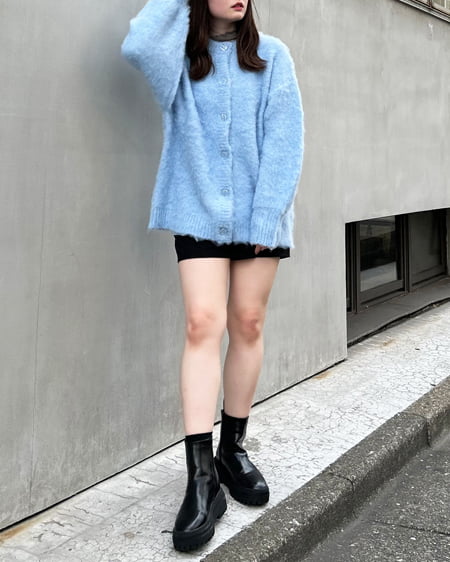 【女性らしさ溢れるふわふわシャギーニットのカーディガン】