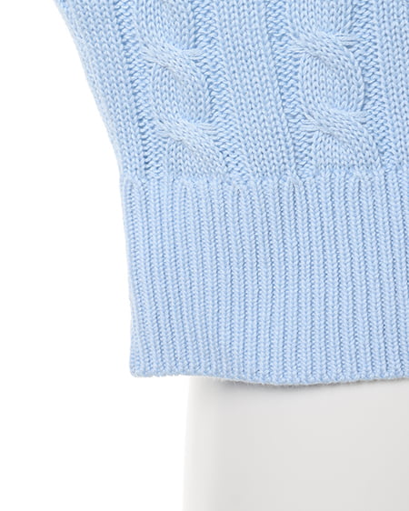 トラッドな雰囲気を演出するケーブル編みの半袖ニット。