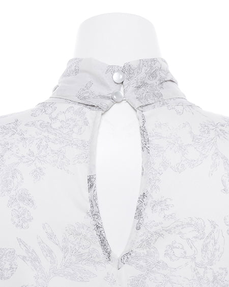 ・全体にあしらわれた花柄と、ボリュームのあるフリルやリボンがポイントのブラウスです。