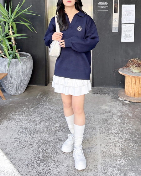 胸元にはスクールライクなエンブレム刺繍でアクセントをプラスしています。