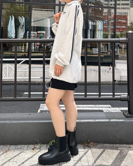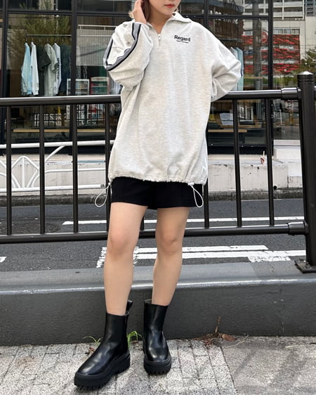 ハーフZIP裾ドロスト胸ロゴ袖ラインスウェットチュニック