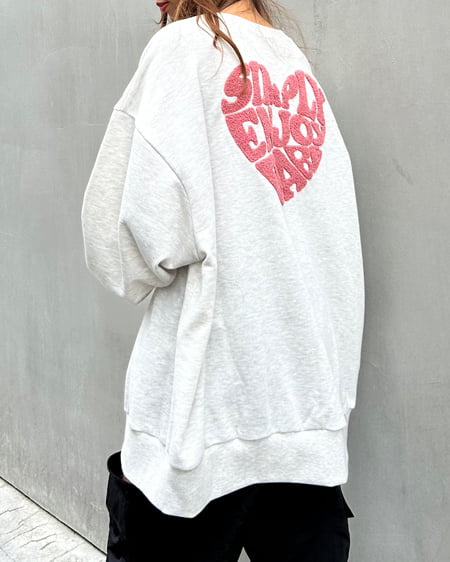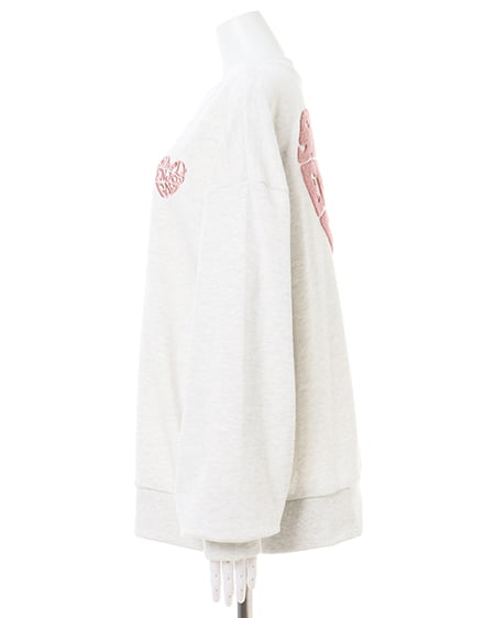 バックにあしらったモコモコのサガラ刺繍がアクセントになったスウェットトップス。