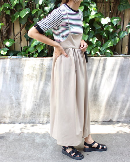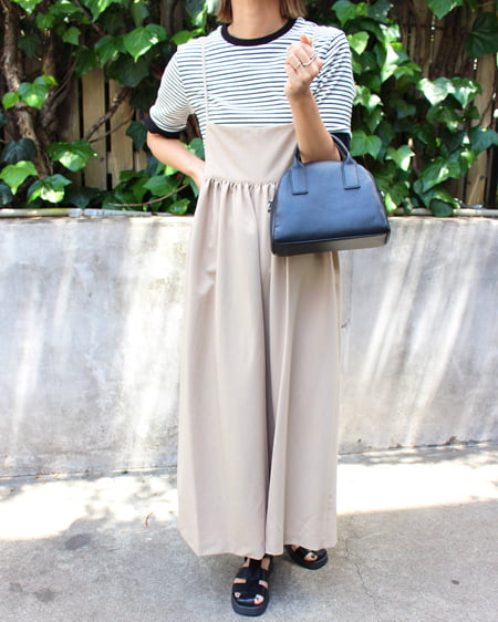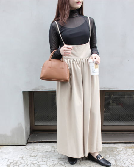 ワイドなシルエットでトレンドスタイルが完成するサロペット。
