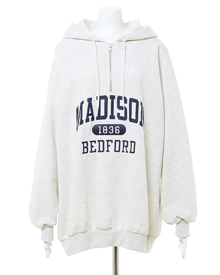 ハーフZIPカレッジロゴチュニックパーカー
