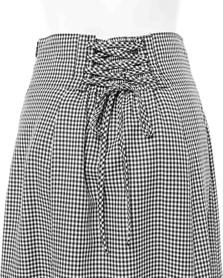 ・バックのレースアップデザインがあるので、トップスはインして着ていただくとどこから見ても可愛く魅せられます!
