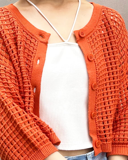2WAYショート丈/メッシュニット7分袖カーディガン