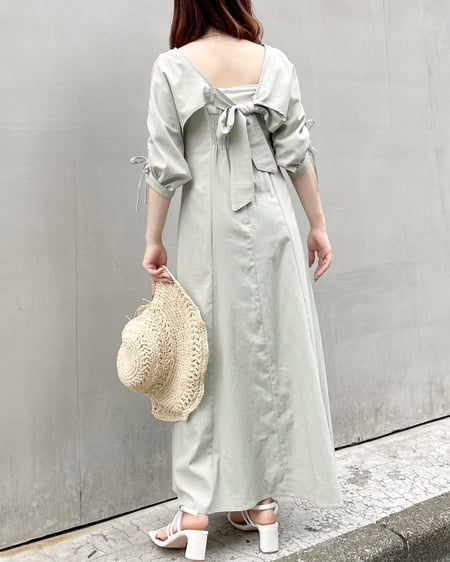 【セットアイテム】BACKリボンドロストトップス+フレアキャミワンピースSET