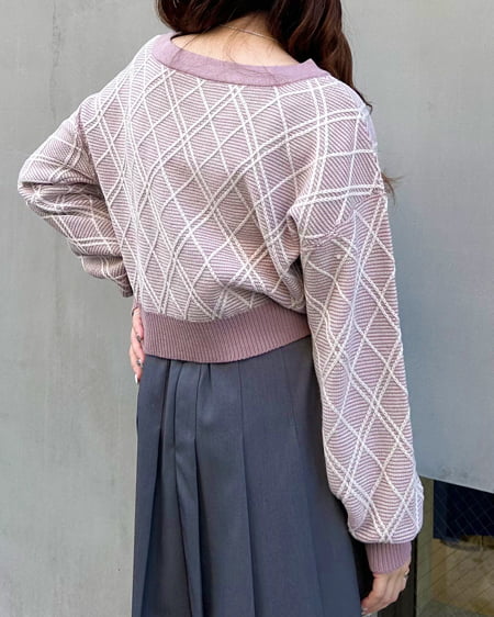 【セットアイテム】チェック柄ニットカーディガン+キャミSET
