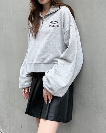ハーフジップ胸ロゴライン配色ショートトップス