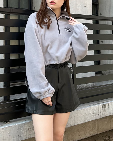 ハーフジップ胸ロゴショート丈フリーストップス