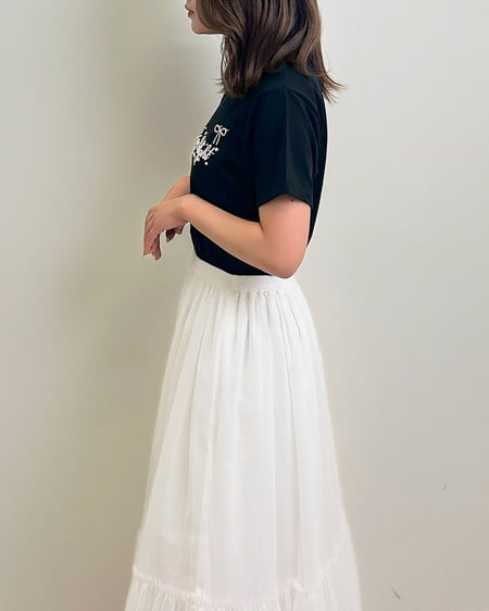 【ブローチリボン付】ふくれ刺しゅう装飾ロゴTシャツ