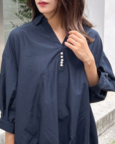 【WEB限定】パール付き裾タックスキッパー7分袖シャツ
