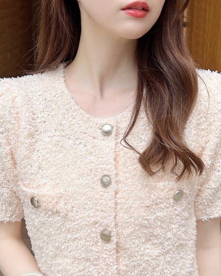 ファンシーヤーン半袖ニットカーディガン