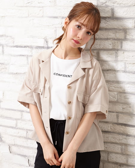 刺繍ロゴ入りフレンチスリーブ/トップス
