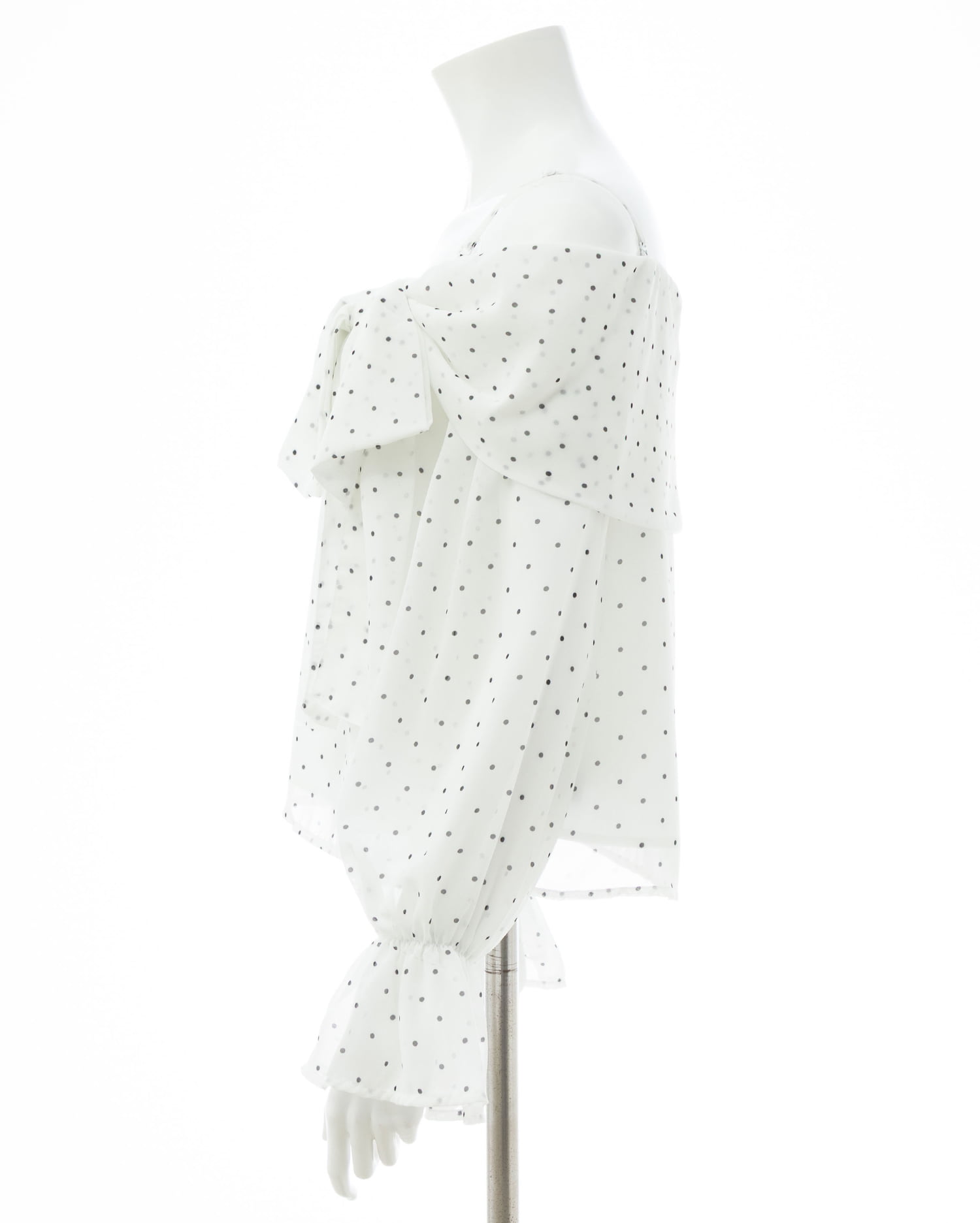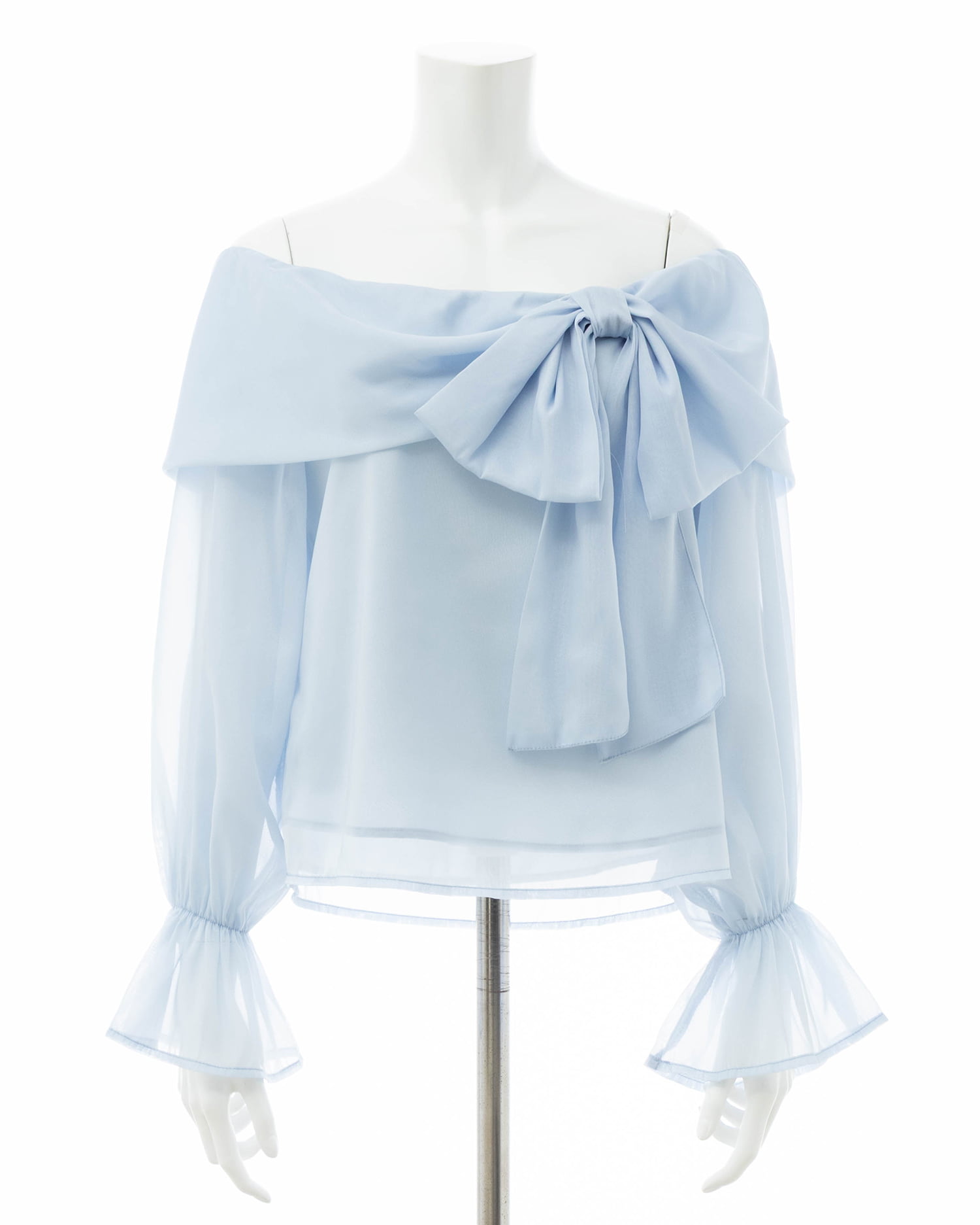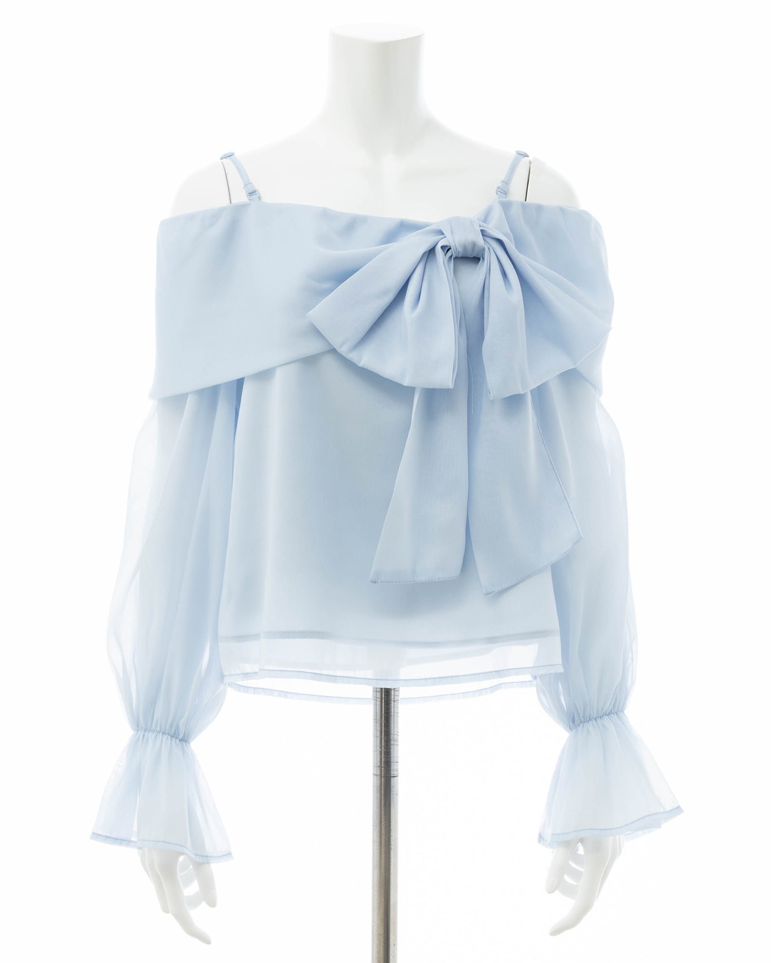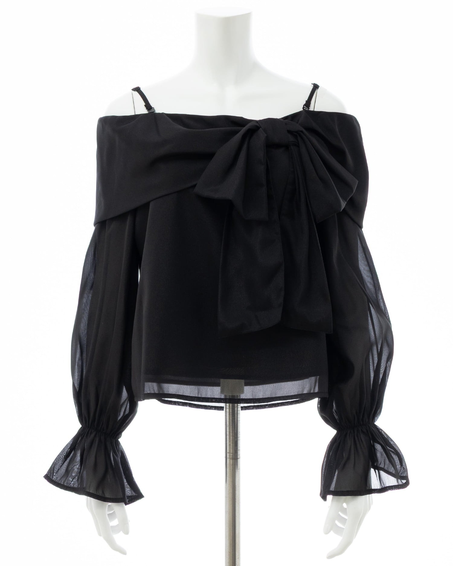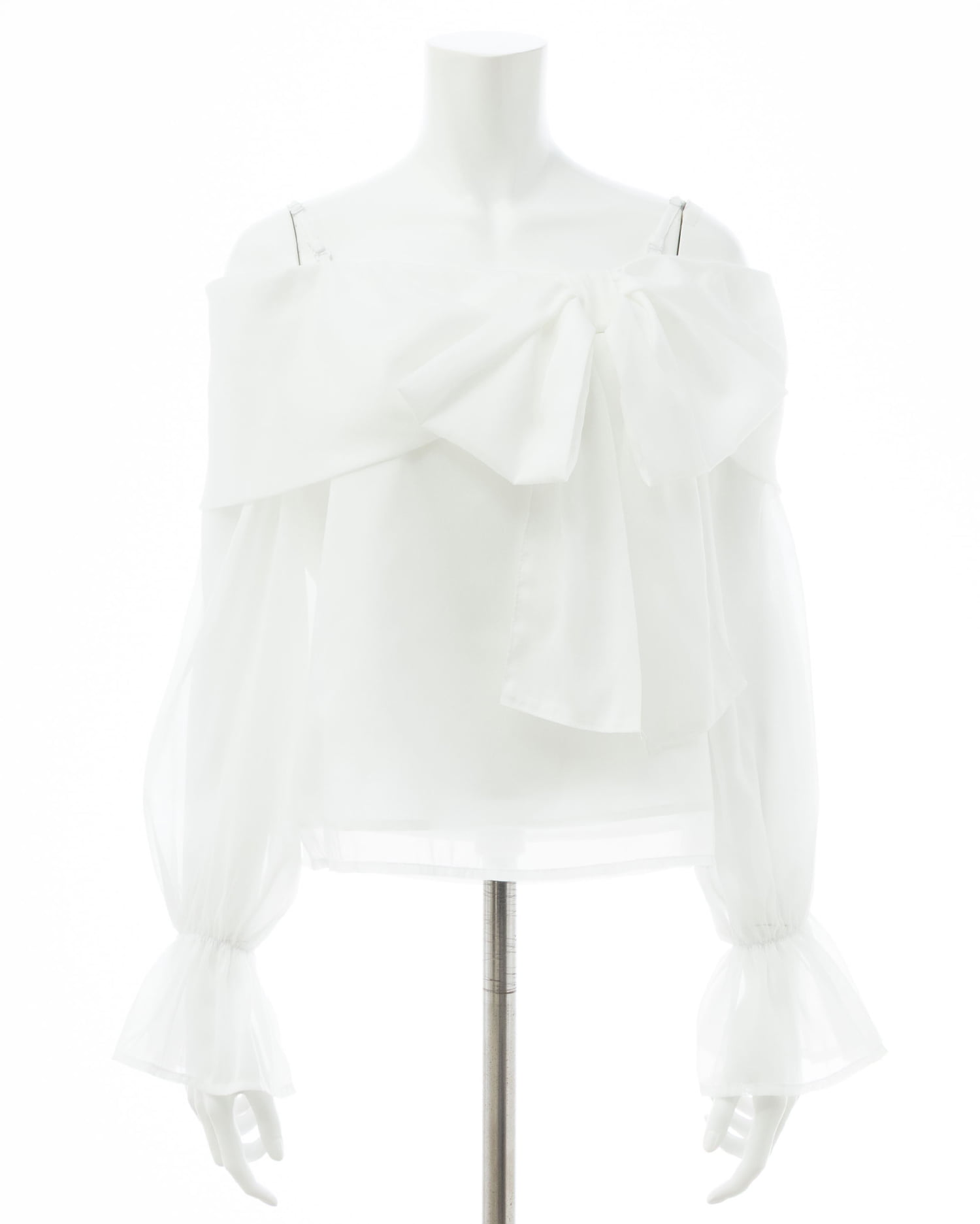 【シアー素材とリボンがかわいらしいオフショルブラウス】