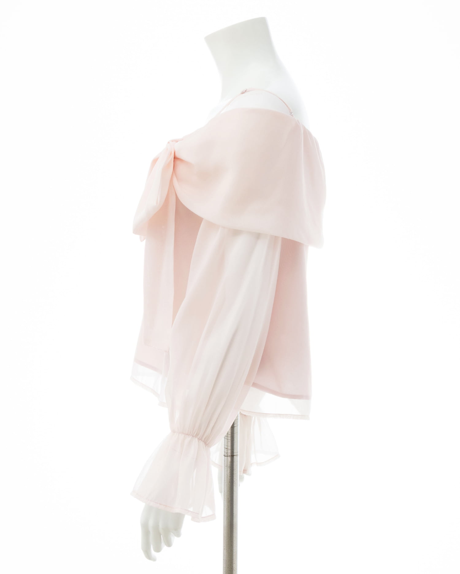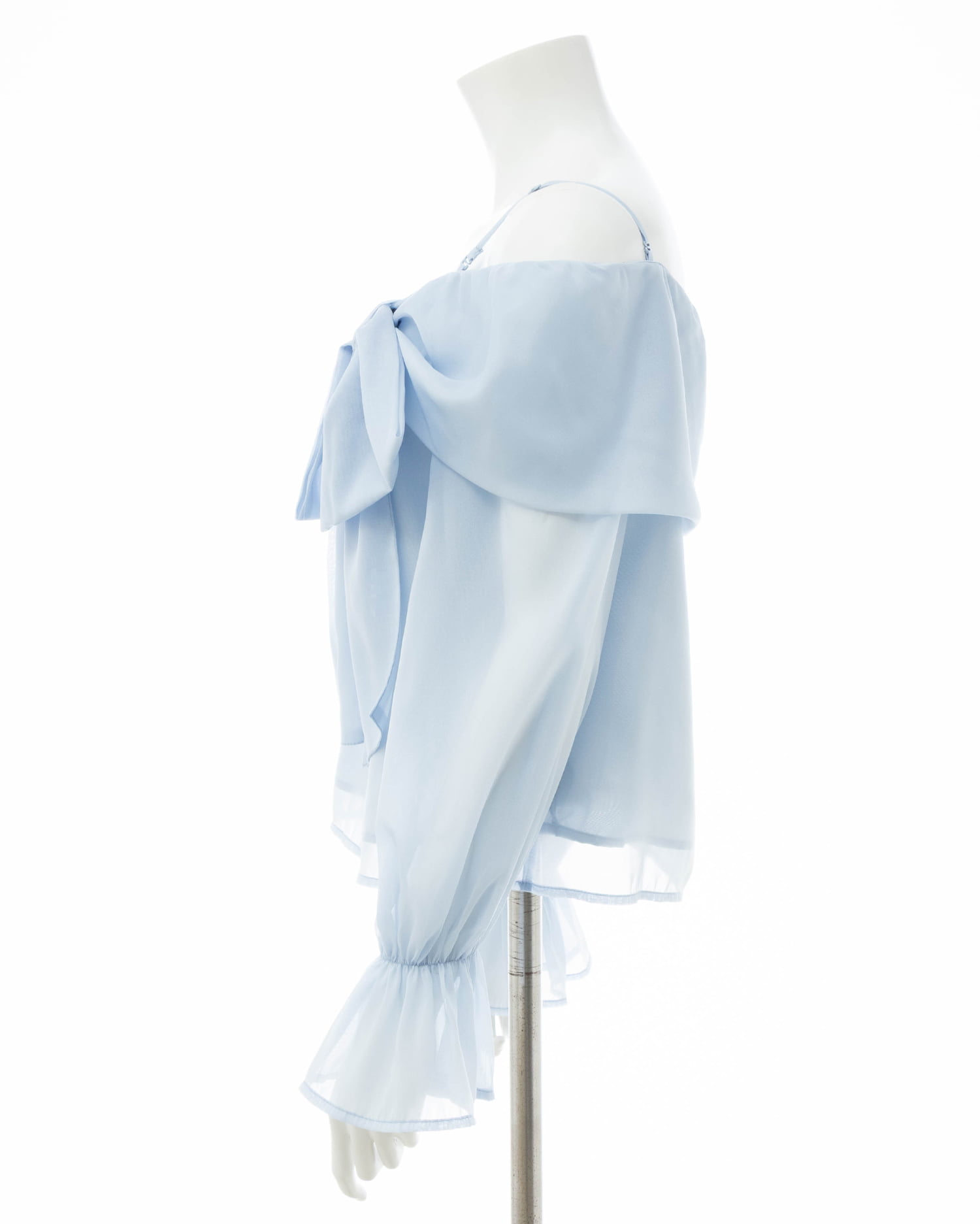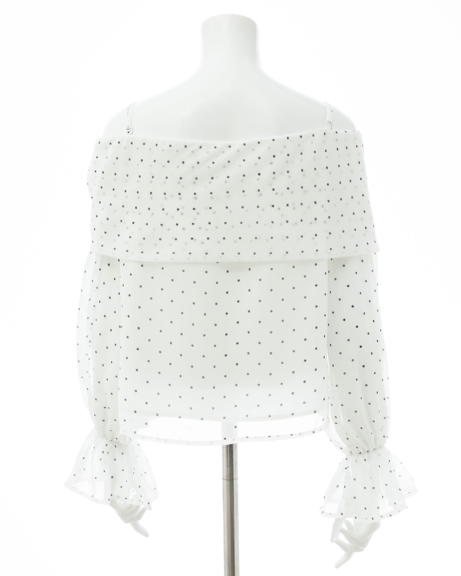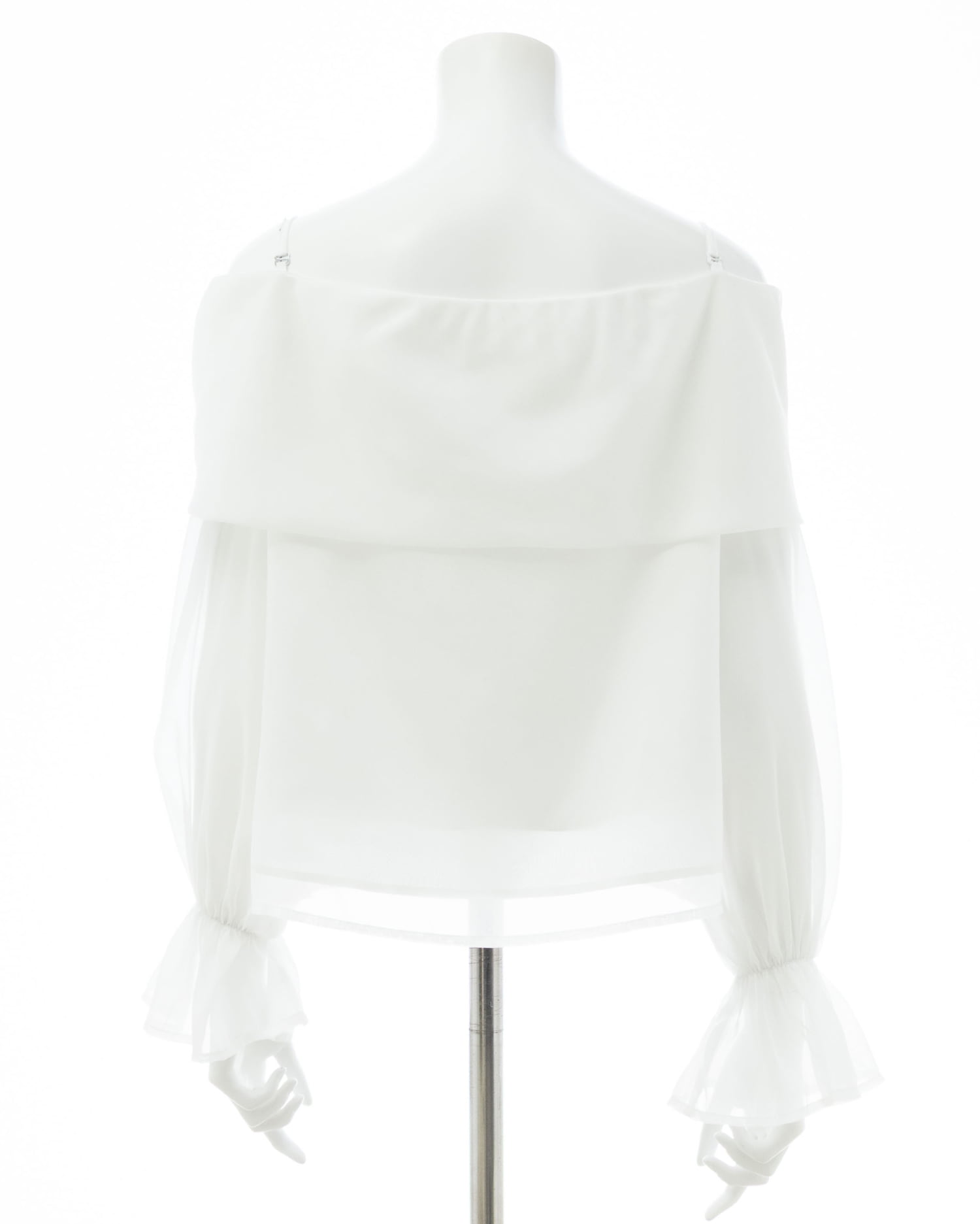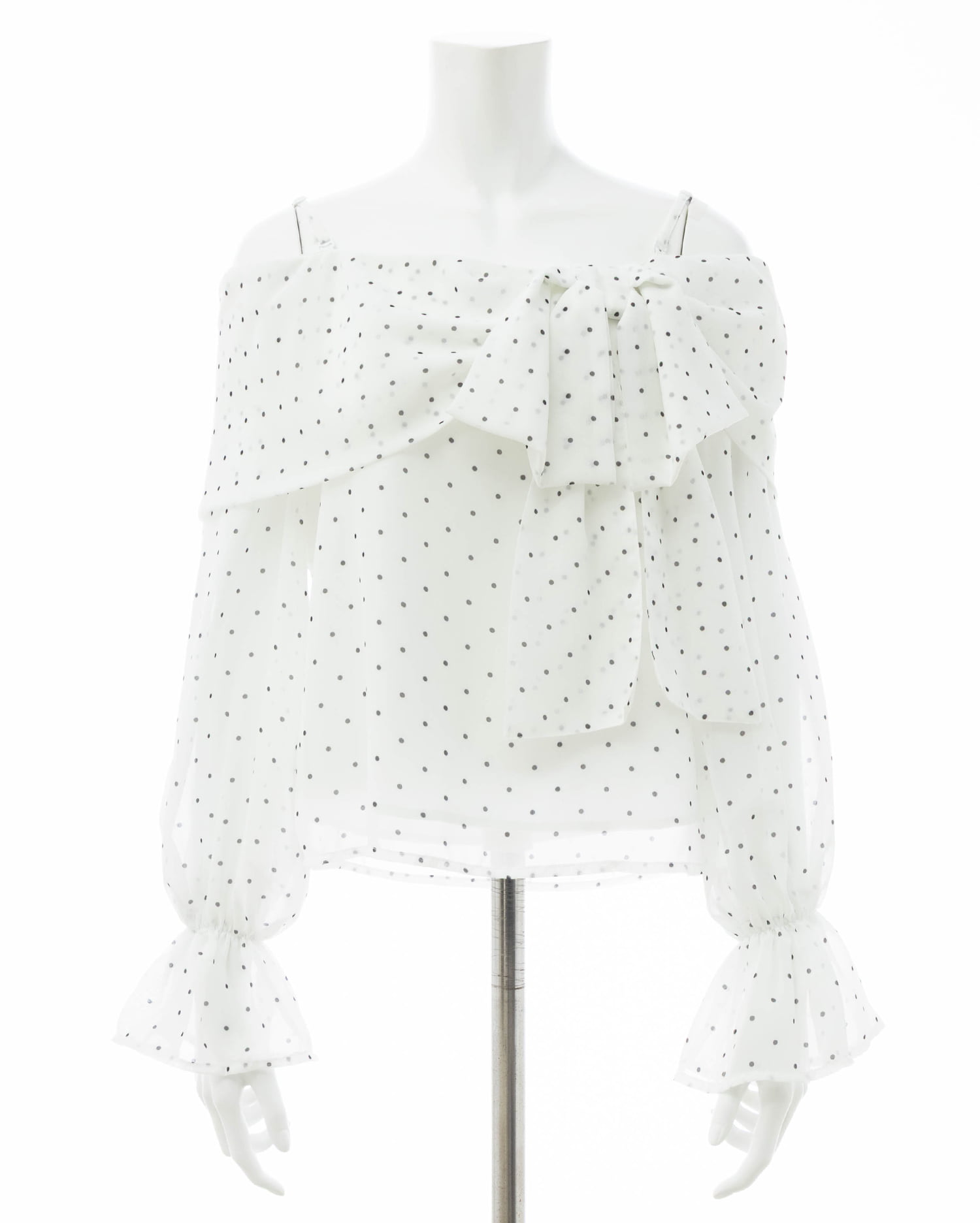 【シアー素材とリボンがかわいらしいオフショルブラウス】