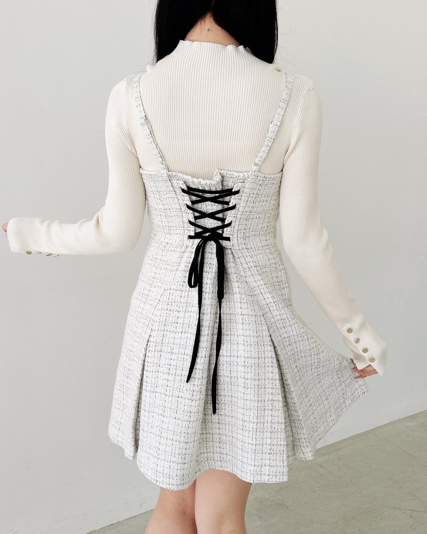 バックのレースアップデザインで後ろ姿も抜かりナシのアイテムです。