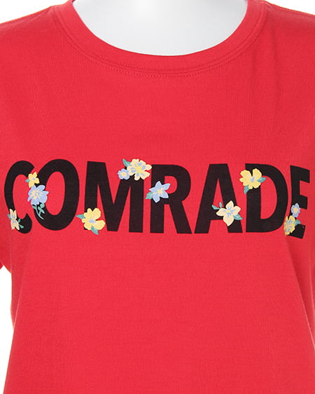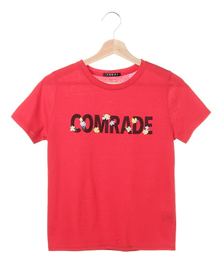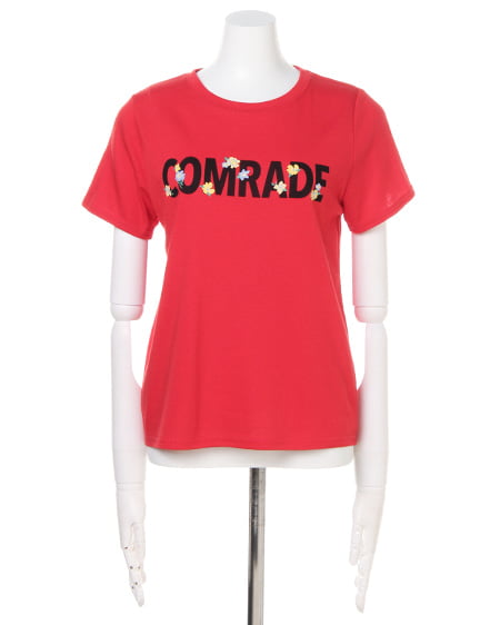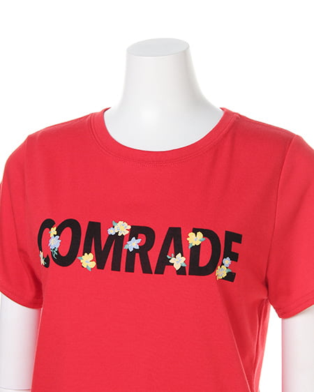 着るだけで気分上々!仲間を意味する「COMRADE」のロゴが、インパクトのある1枚。ロゴの周りには、季節感のあるフラワーで色をプラス。ベーシックなカラーに映える、計算されたデザインになっています。ちょっぴり短めの裾丈で、ボトムを選ばず合わせられるのもポイント。しなやかで、肌になじむ素材で着心地も◎です。