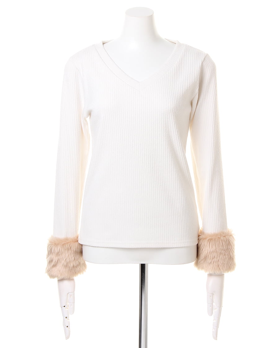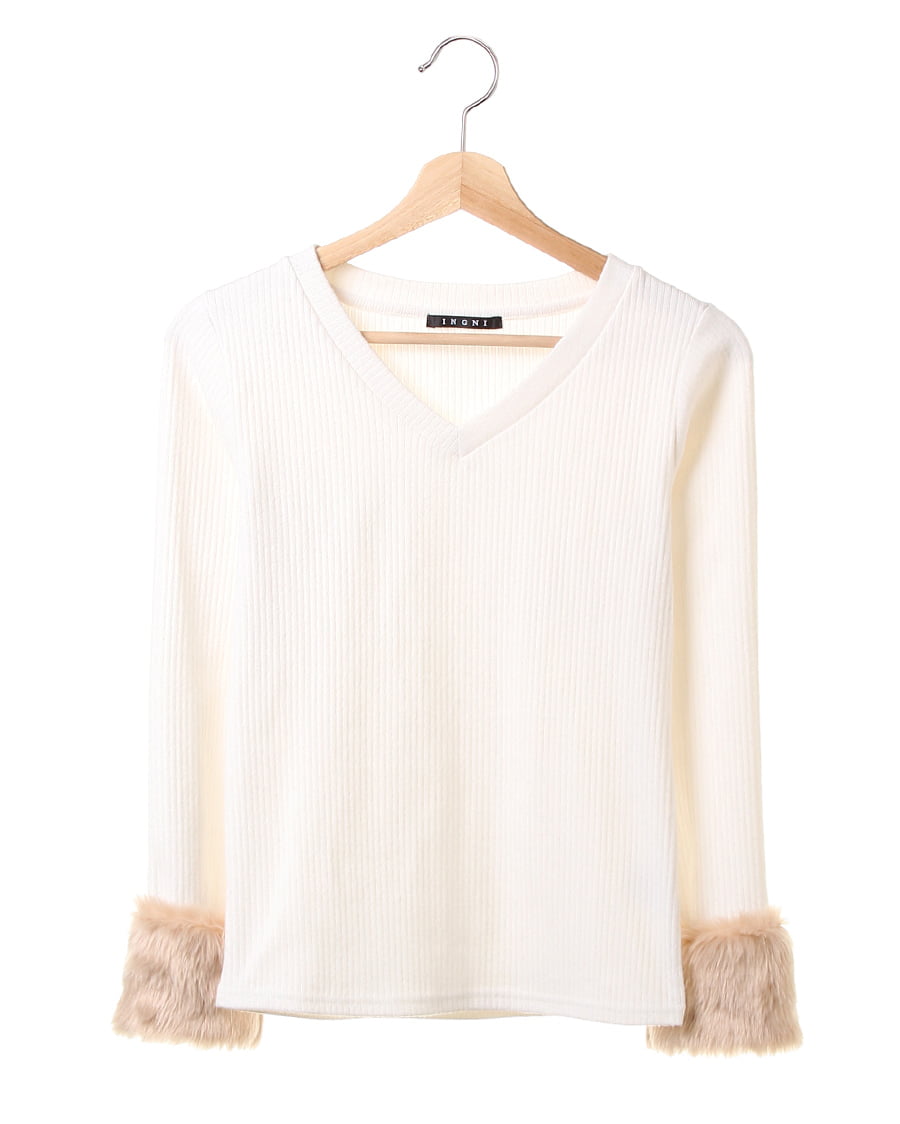 • INGNI(イング) 袖ファーVネック/TOPS オフホワイト