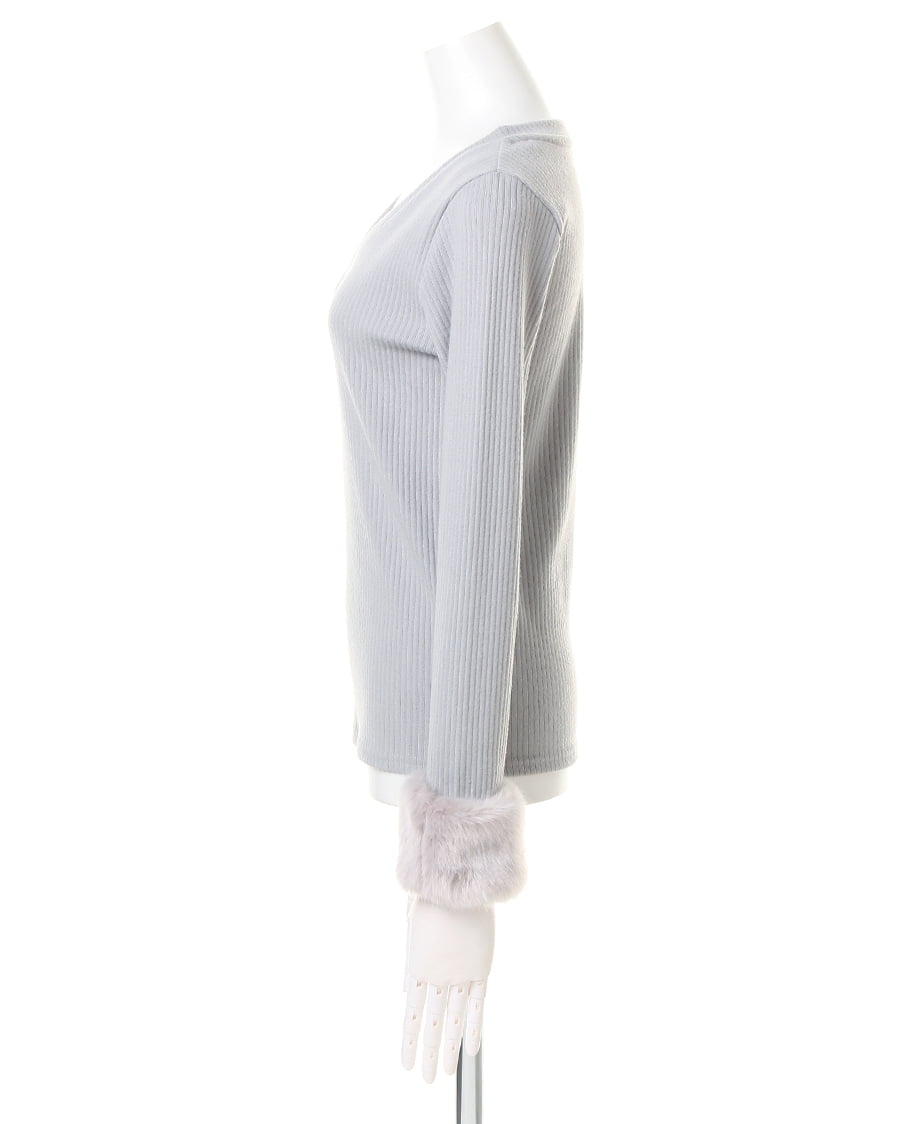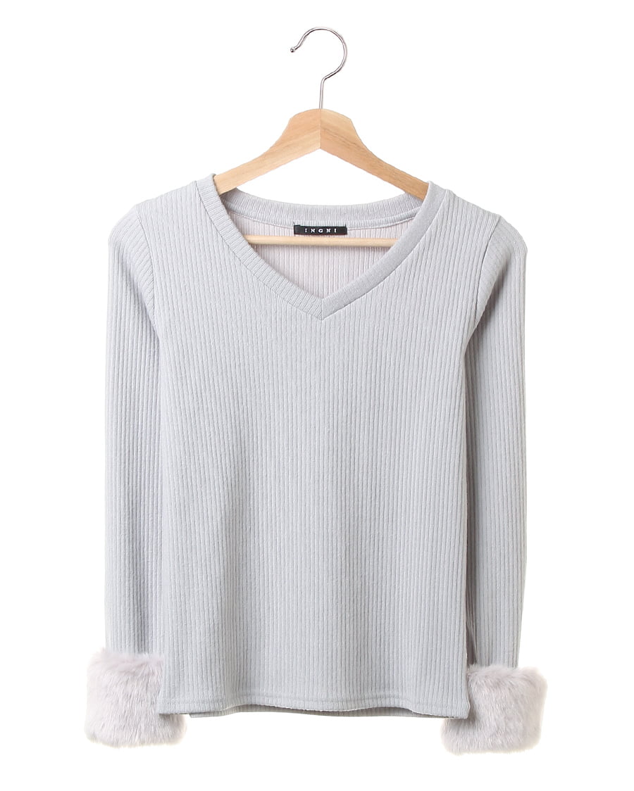 • INGNI(イング) 袖ファーVネック/TOPS グレー