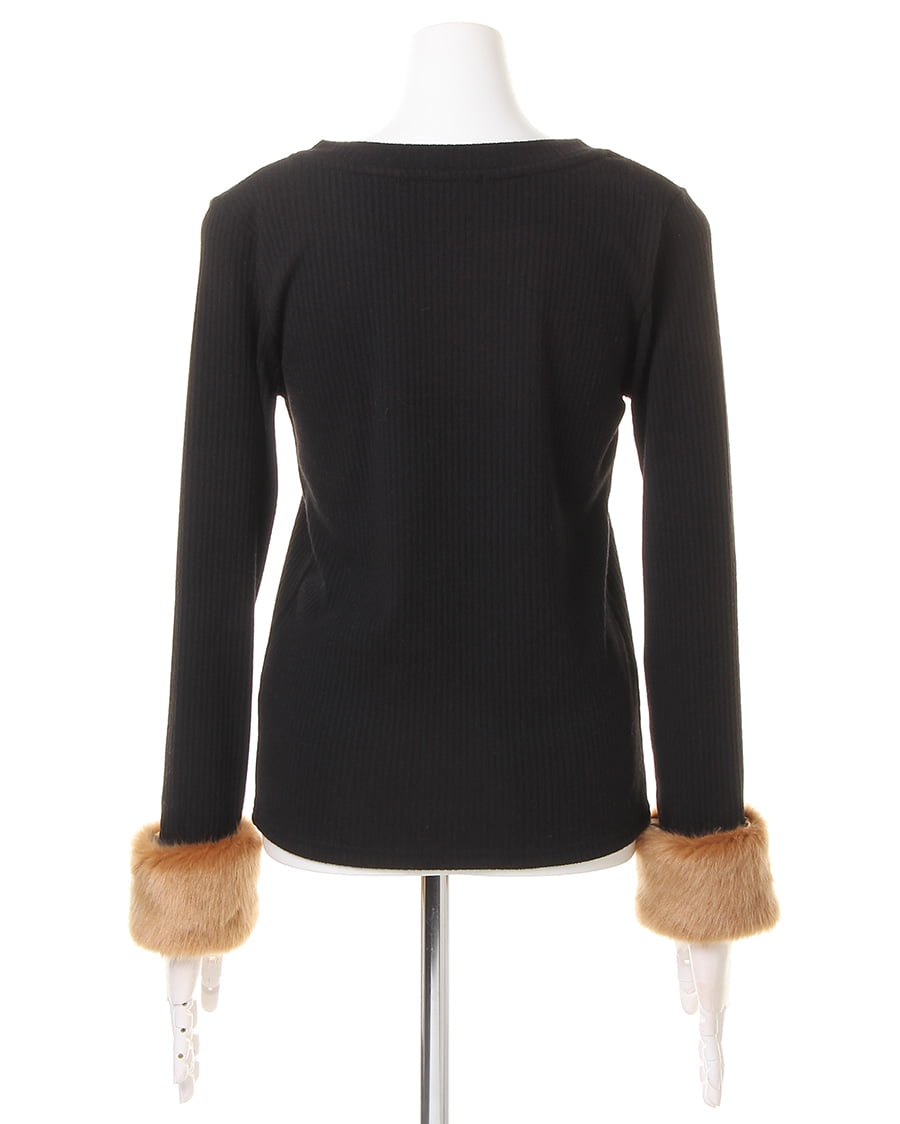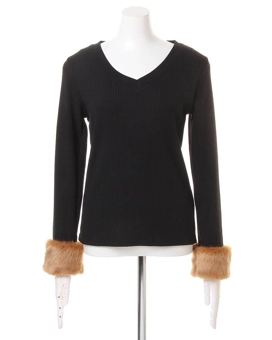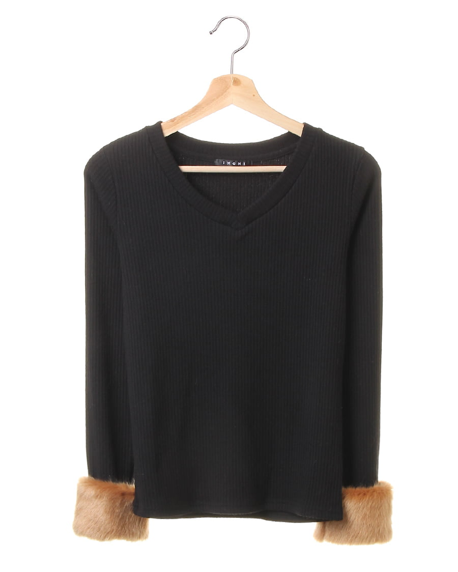 • INGNI(イング) 袖ファーVネック/TOPS クロ