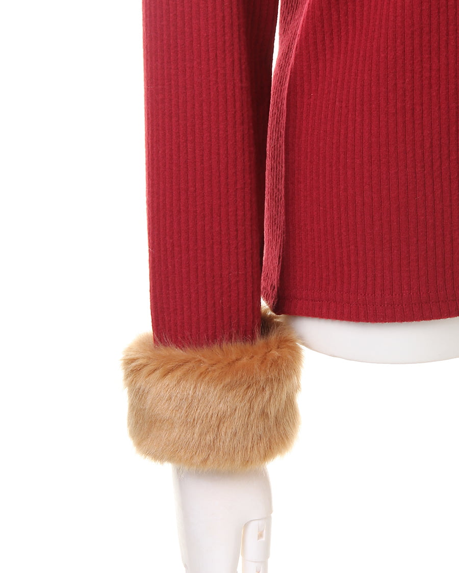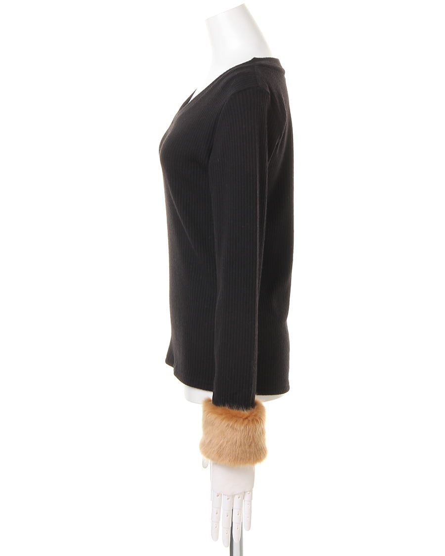 ミニマムなデザインに落とし込んだ、ファーをあしらった袖がトレンドライクなプルオーバー。伸縮性の高い柔らかい生地は、ボディラインにきれいに沿うフィット感がエレガントな印象。すっきり開いたデコルテは、Vネックが大人っぽい。袖のフェイクファーが、コーデのアクセント。ワンカラーで仕立てたシンプルな身頃で、レイヤードスタイルにもオススメです。