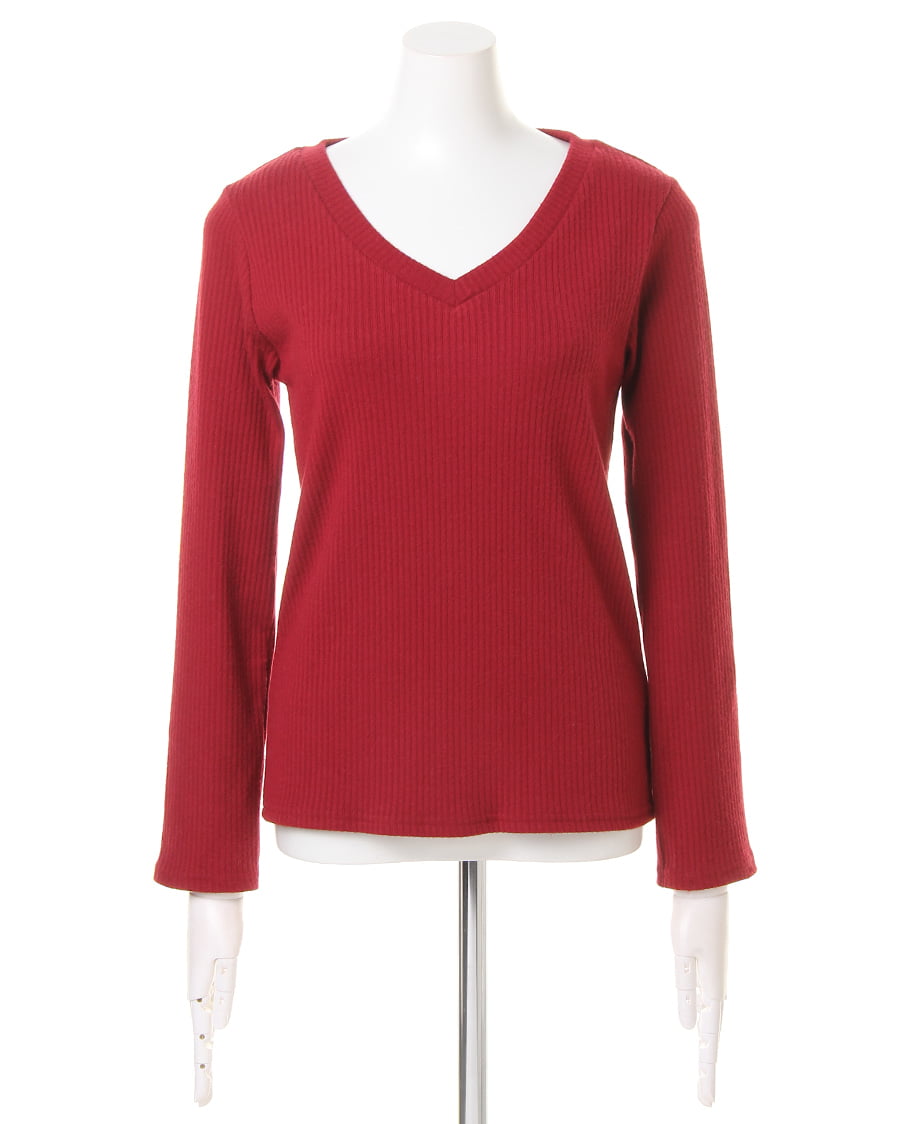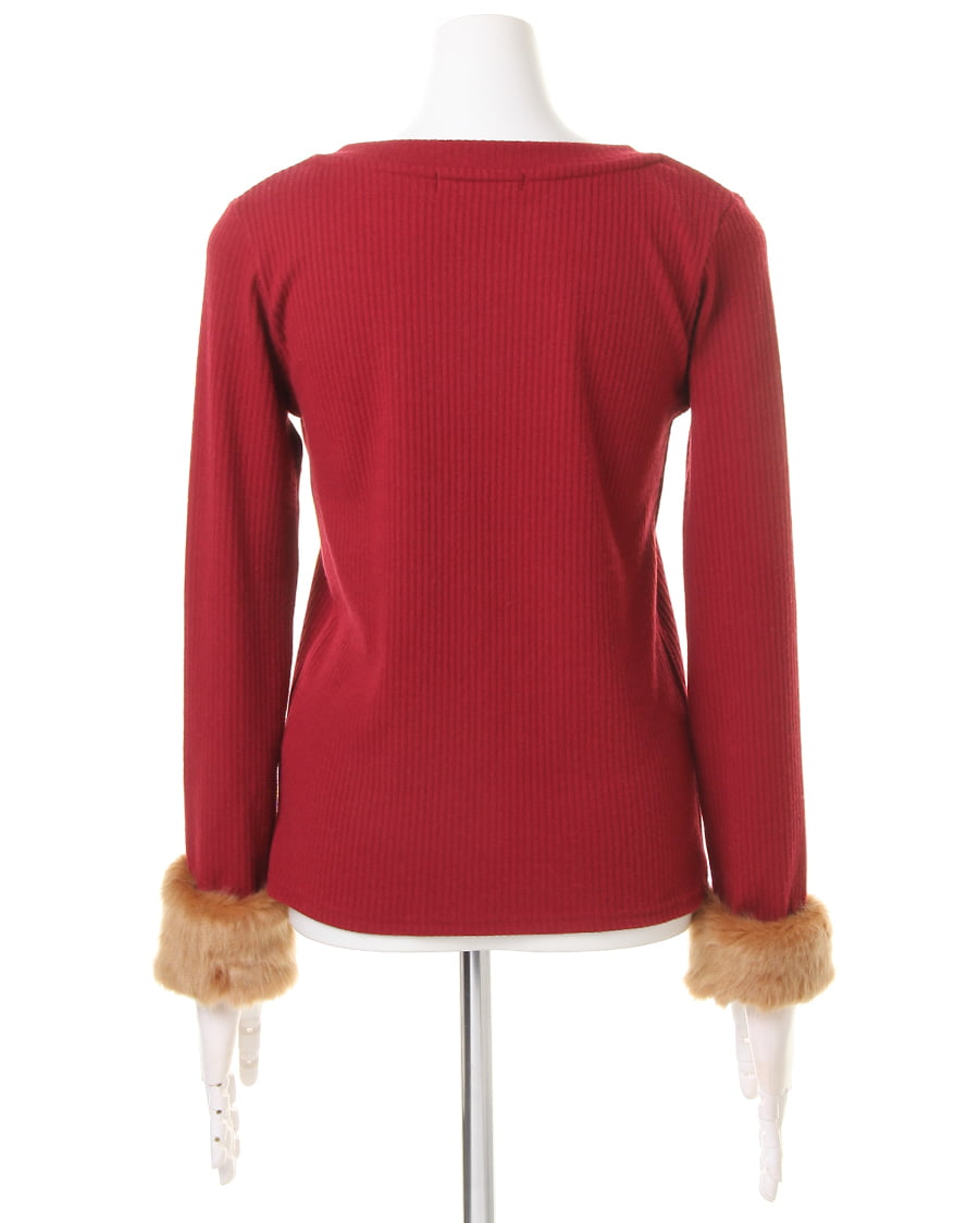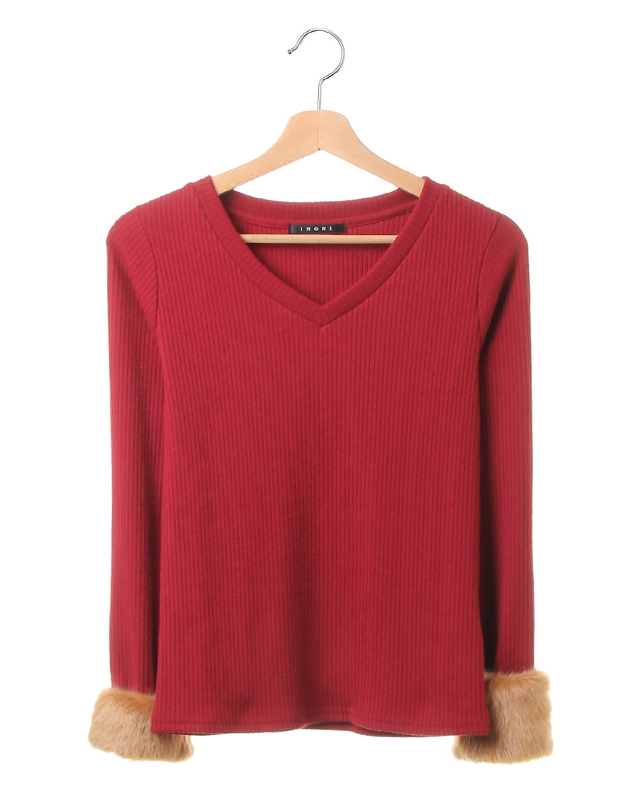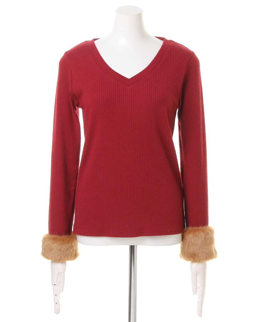 • INGNI(イング) 袖ファーVネック/TOPS ボルドー
