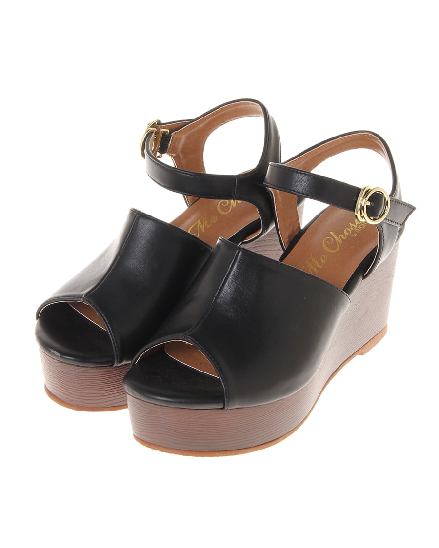 ナチュラルな木目調のウエッジソールがこれからの季節にぴったりなサンダル。フェイクレザーを使用した幅広のアッパーと程よい幅のストラップで安定感が良く、接地面の多いウェッジタイプだから歩きやすさも抜群です。高低差の少ないソールは合わせるスタイルを選ばない優秀アイテム。厚底なのでスラッと脚長&美脚をメイクできるのも高ポイント。