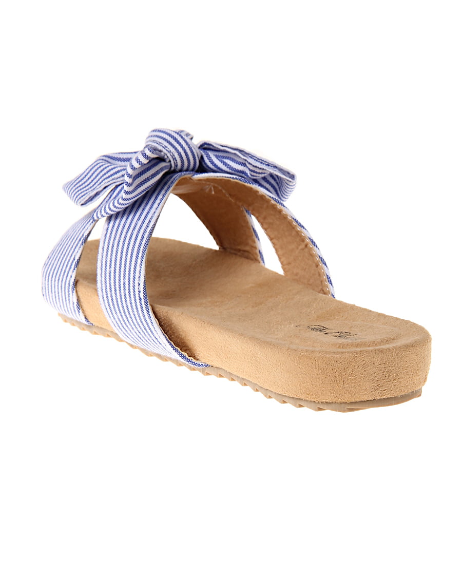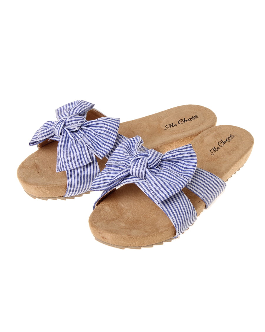 トレンドの結びリボンが目を惹くフラットサンダル。フロント部分のリボンモチーフと抜け感のあるクロスベルトのデザインが、大人フェミニンな印象に。カジュアルすぎないオープントゥが、女性らしいすっきりとした足元を演出してくれます。傾斜がないフラットなデザインで使いやすく、柔らかい素材を使用しているので足にフィットして歩きやすさも抜群◎。デニムなどカジュアルなスタイリングにはもちろん、スカートやワンピースなどのレディライクなアイテムと合わせたスタイリングにもぴったりです。