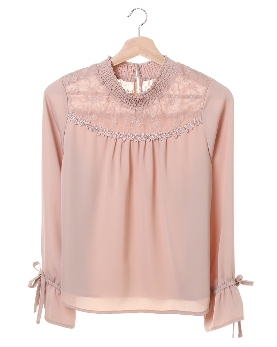 ヨーク部分に小花柄の刺しゅうを施したレディなブラウス。襟元のシャーリングや袖リボン使いなど細部までこだわった贅沢な一枚です。光沢感のあるやわらかなトロミ素材の生地が上品でフェミニンな雰囲気を纏い、優しい肌触りで着心地も最適。落ち感のあるボディラインを拾わないゆったりシルエットで、体型カバーも期待できる優秀アイテムです。