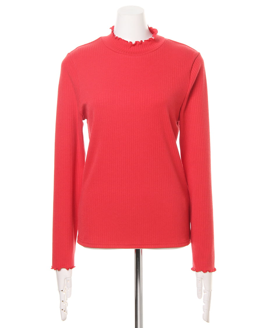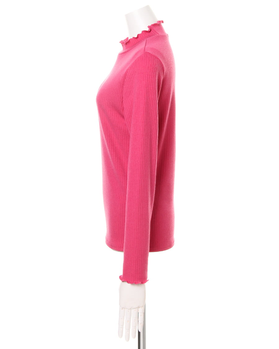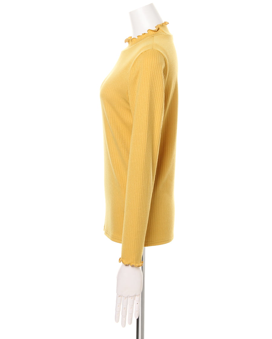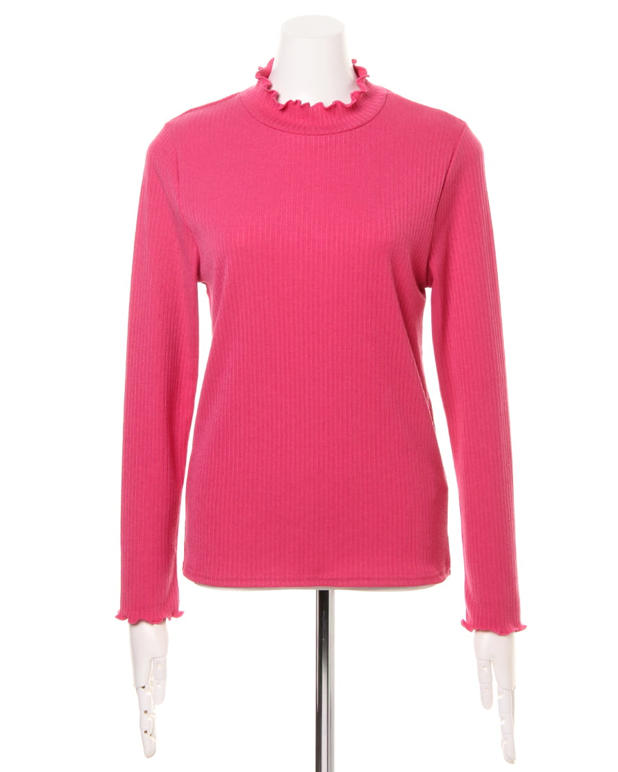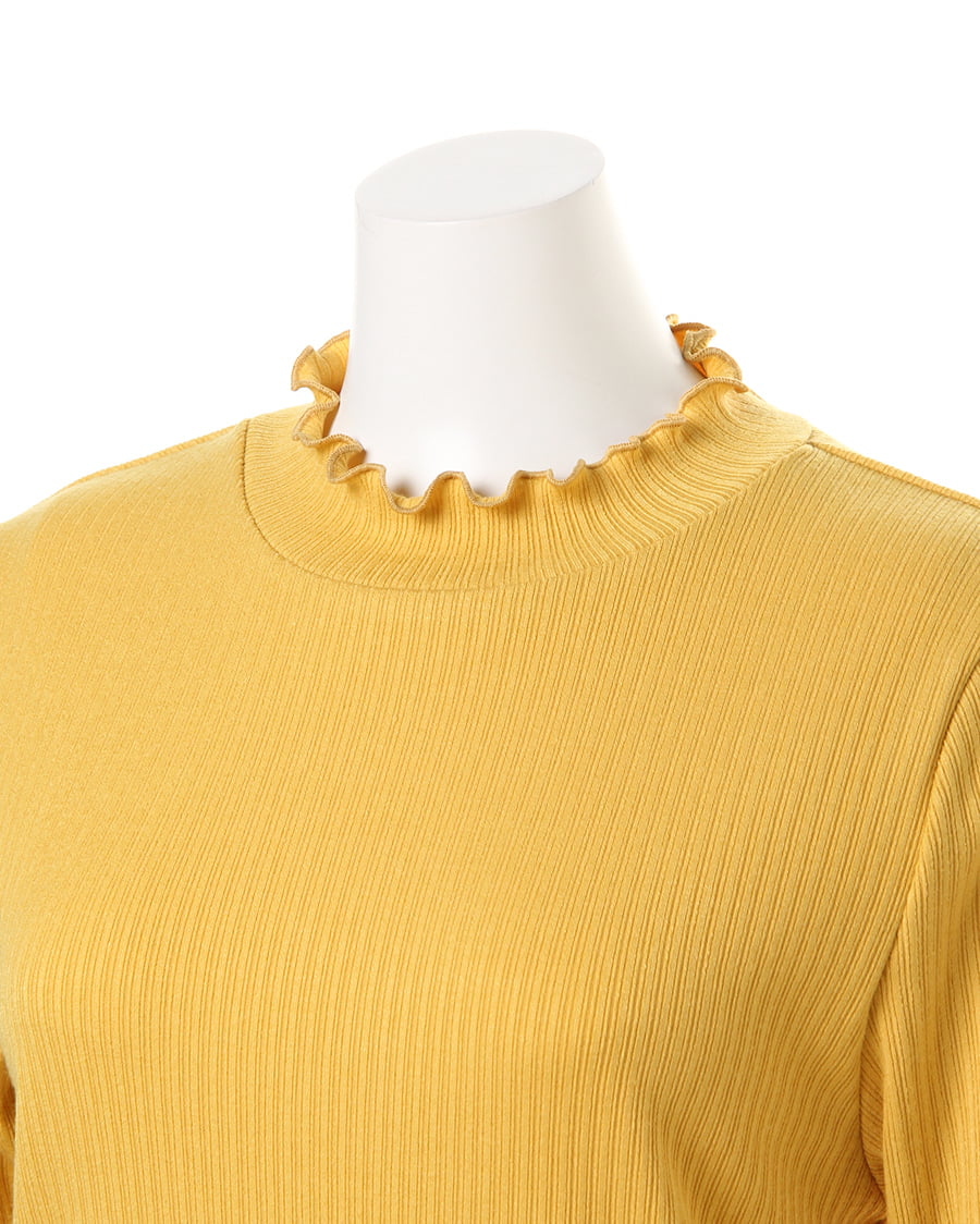 ネックラインと袖口に施されたフリル使いがトレンドライクなトップス。ボディラインにきれいにフィットする柔らかなリブ素材が、着心地の良さを実現スタイルアップを叶えます。一枚ではもちろん、レイヤードスタイルにも重宝する万能アイテムです。シンプルベーシックなデザインは、様々なボトムスと相性◎。カラー違いで揃えたくなる色合いも魅力的です。