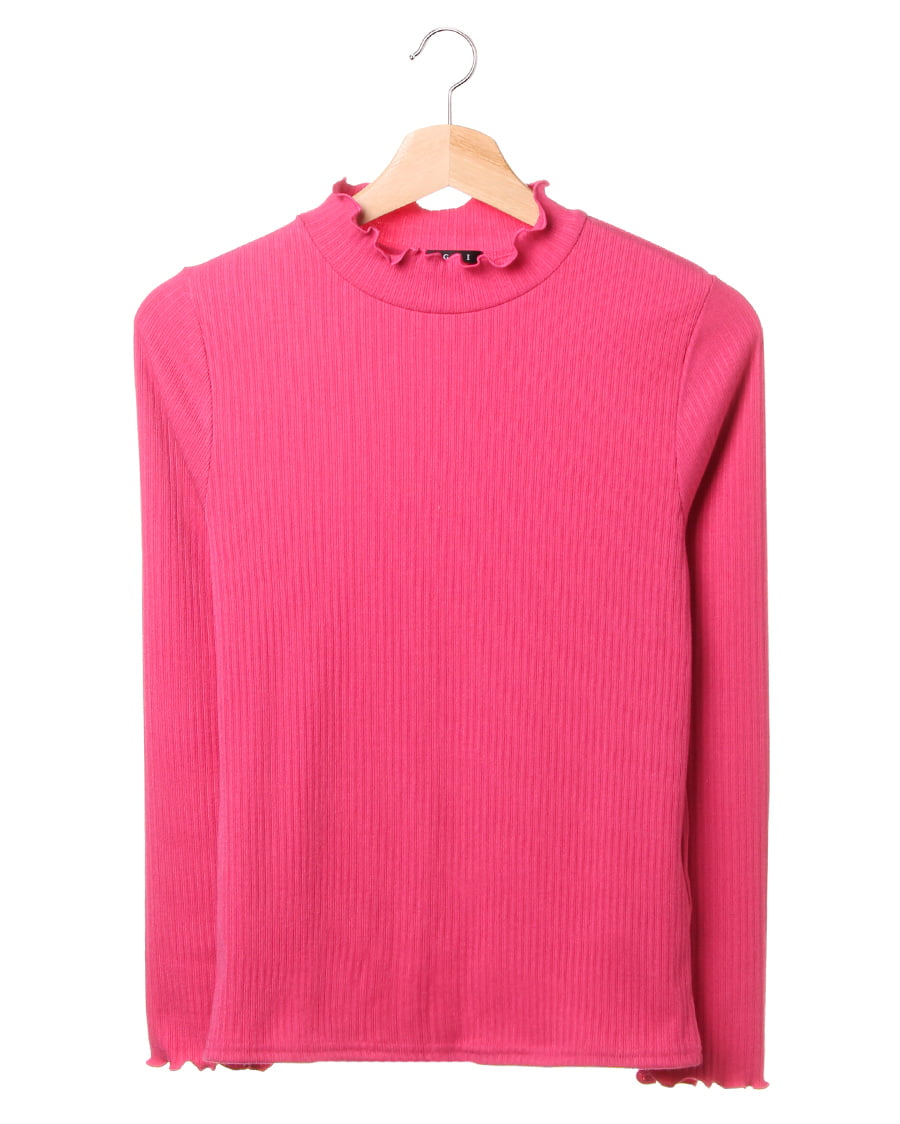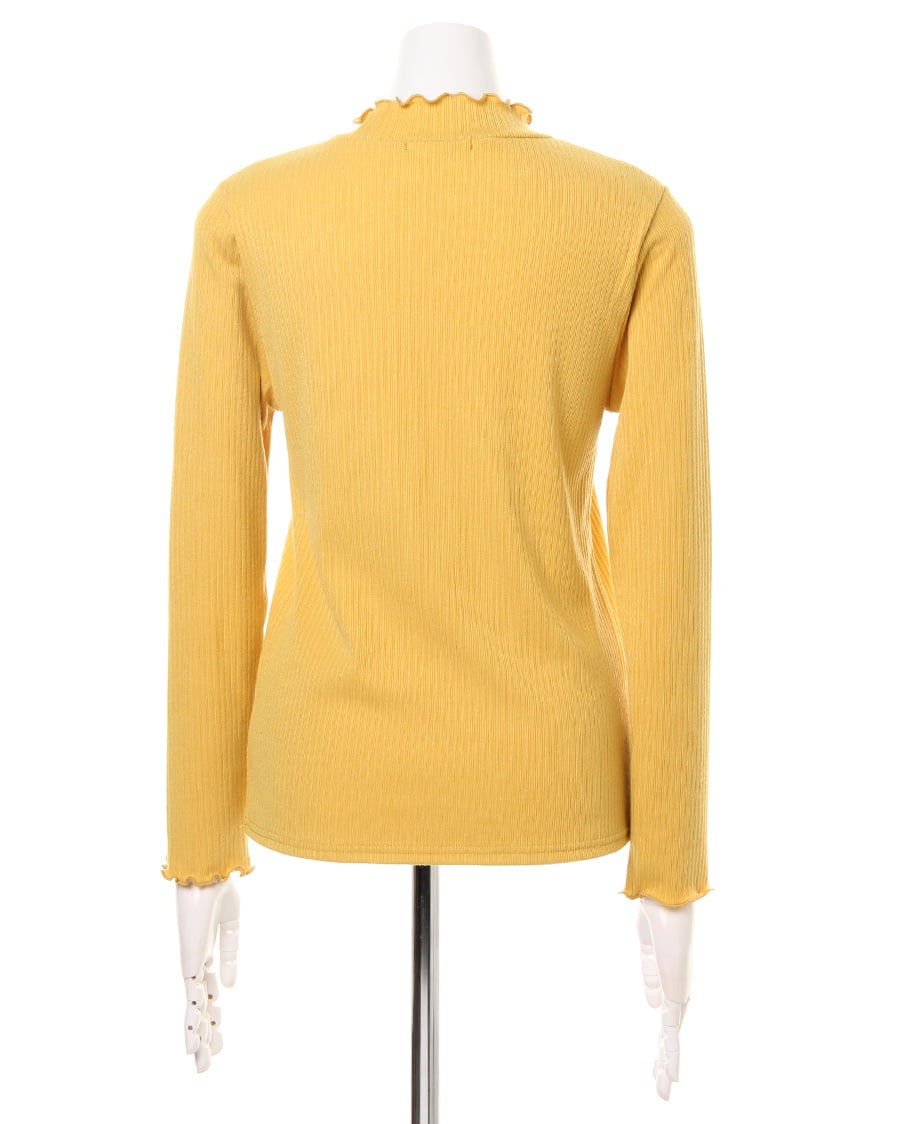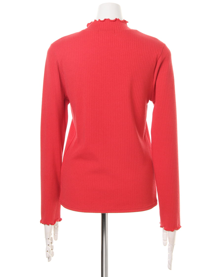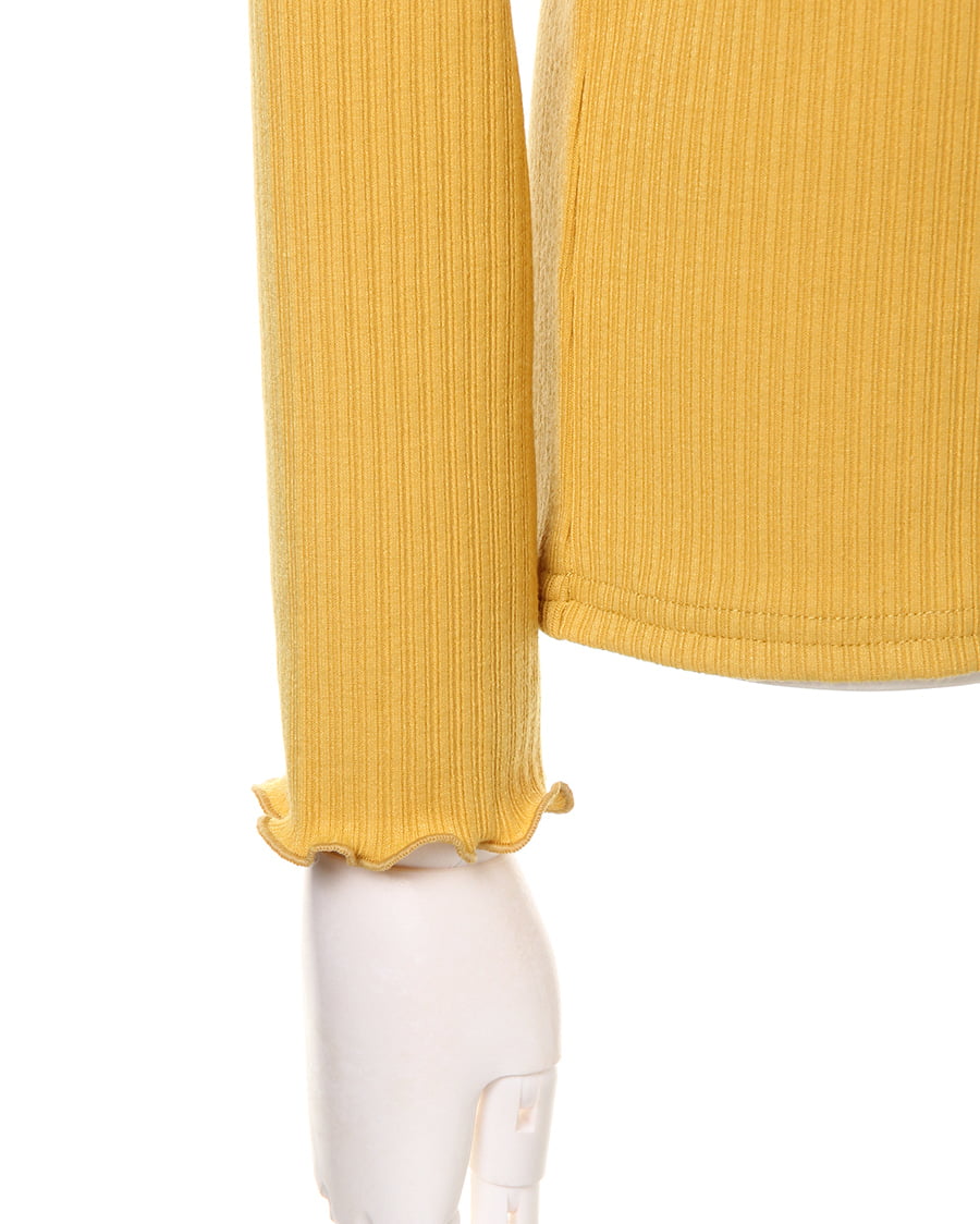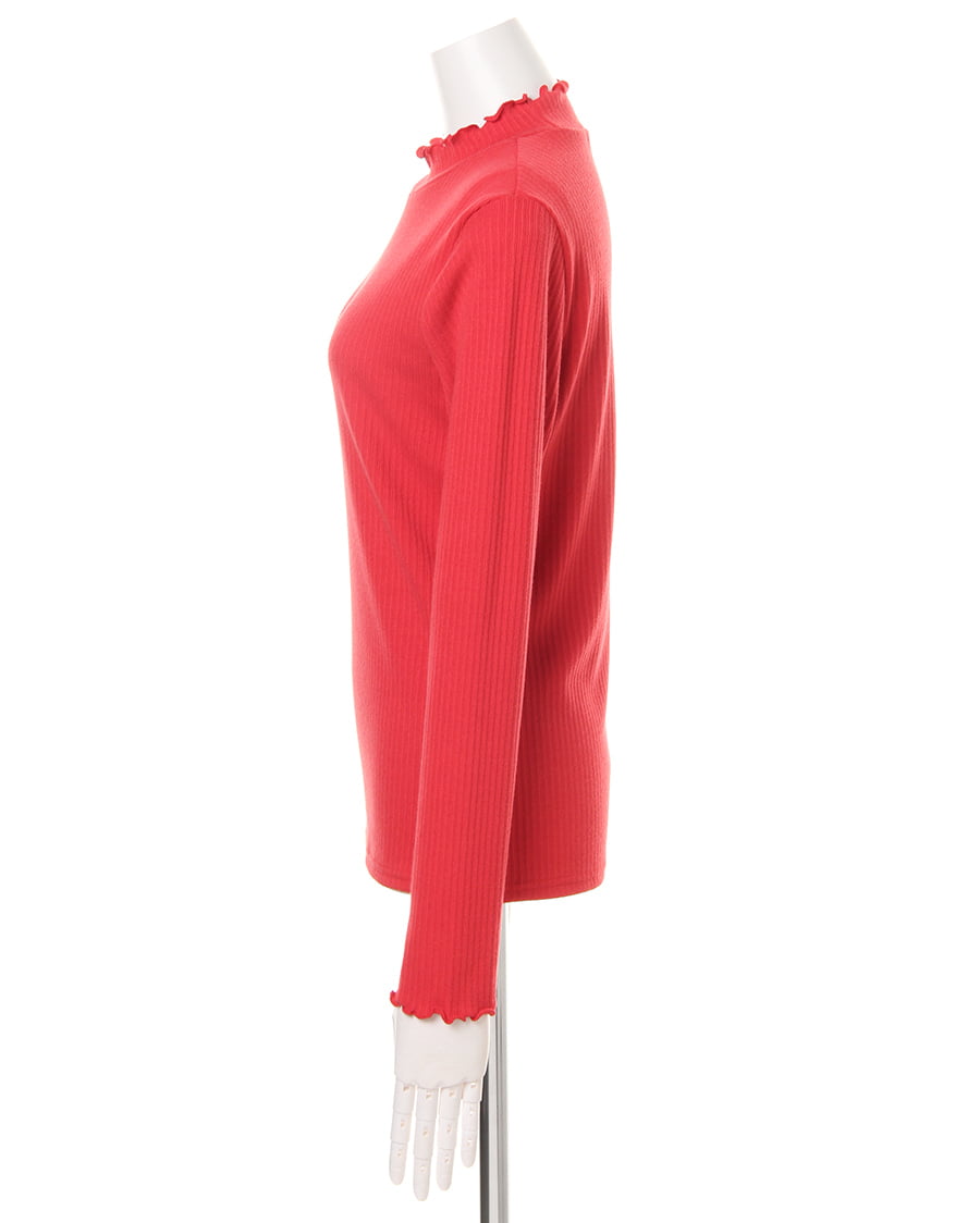 ネックラインと袖口に施されたフリル使いがトレンドライクなトップス。ボディラインにきれいにフィットする柔らかなリブ素材が、着心地の良さを実現スタイルアップを叶えます。一枚ではもちろん、レイヤードスタイルにも重宝する万能アイテムです。シンプルベーシックなデザインは、様々なボトムスと相性◎。カラー違いで揃えたくなる色合いも魅力的です。