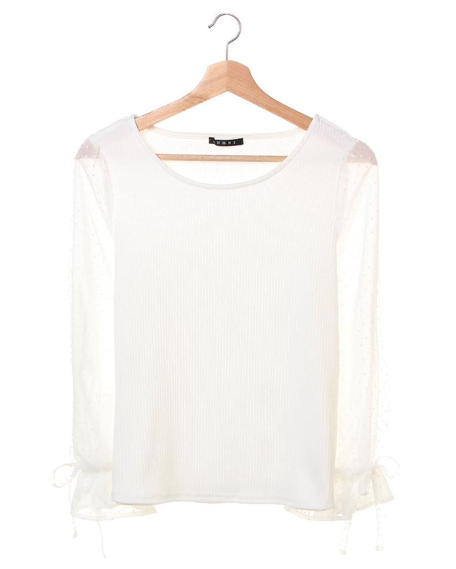チュール素材にドットをあしらったキャンディースリーブがトレンドライクなアイテム。身頃には細めのリブを採用することで、ボディラインにきれいにフィット。1枚ではもちろん、サロペットなどのインナーとしてももたつかない生地感も魅力的です。手首をきゅっと絞っているのでブラウジングも楽しめます。ベーシックなカラーから季節感たっぷりのペールトーンまでカラー豊富に揃っているのでお気に入りを見つけて。