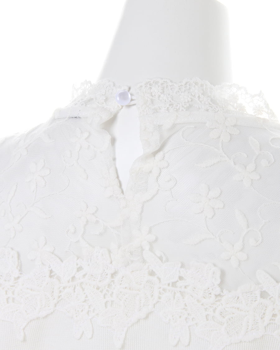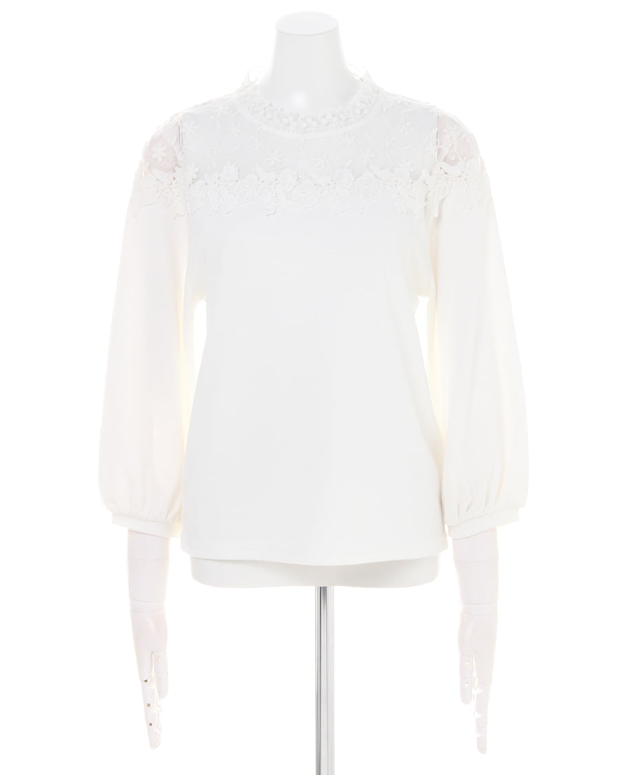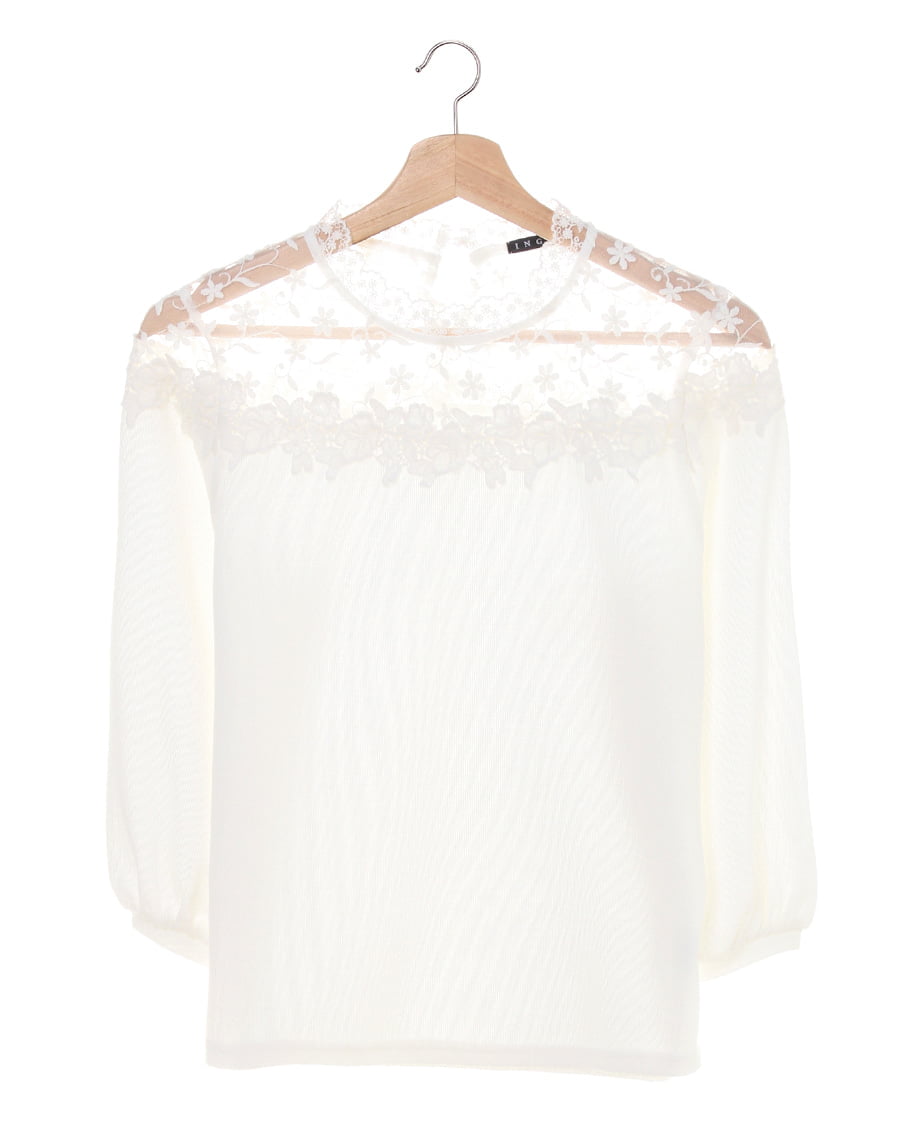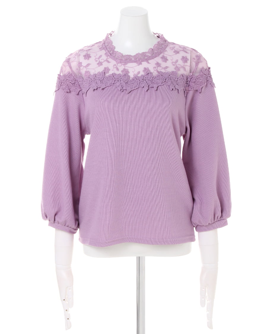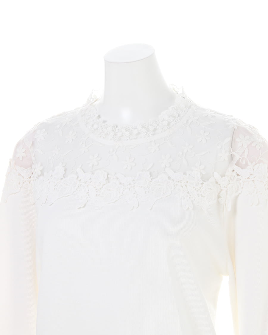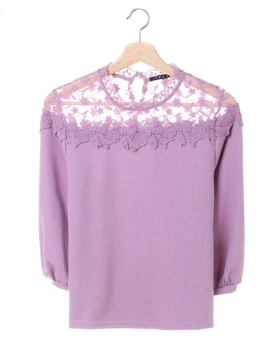 チュールにレースやフラワー刺しゅうを落とし込んだヨーク部分がガーリーで華やかなプルオーバーは、ヘルシーな肌みせがシーズンムードを高める1枚。種類の違うレースを合わせたデザインが存在感抜群、旬のゆったりシルエットで1枚で着てもトレンドライクなスタイルが完成します。しっとり柔らかい素材は女性らしい雰囲気をあおります。ワンカラーなので合わせやすいのも嬉しいポイント。