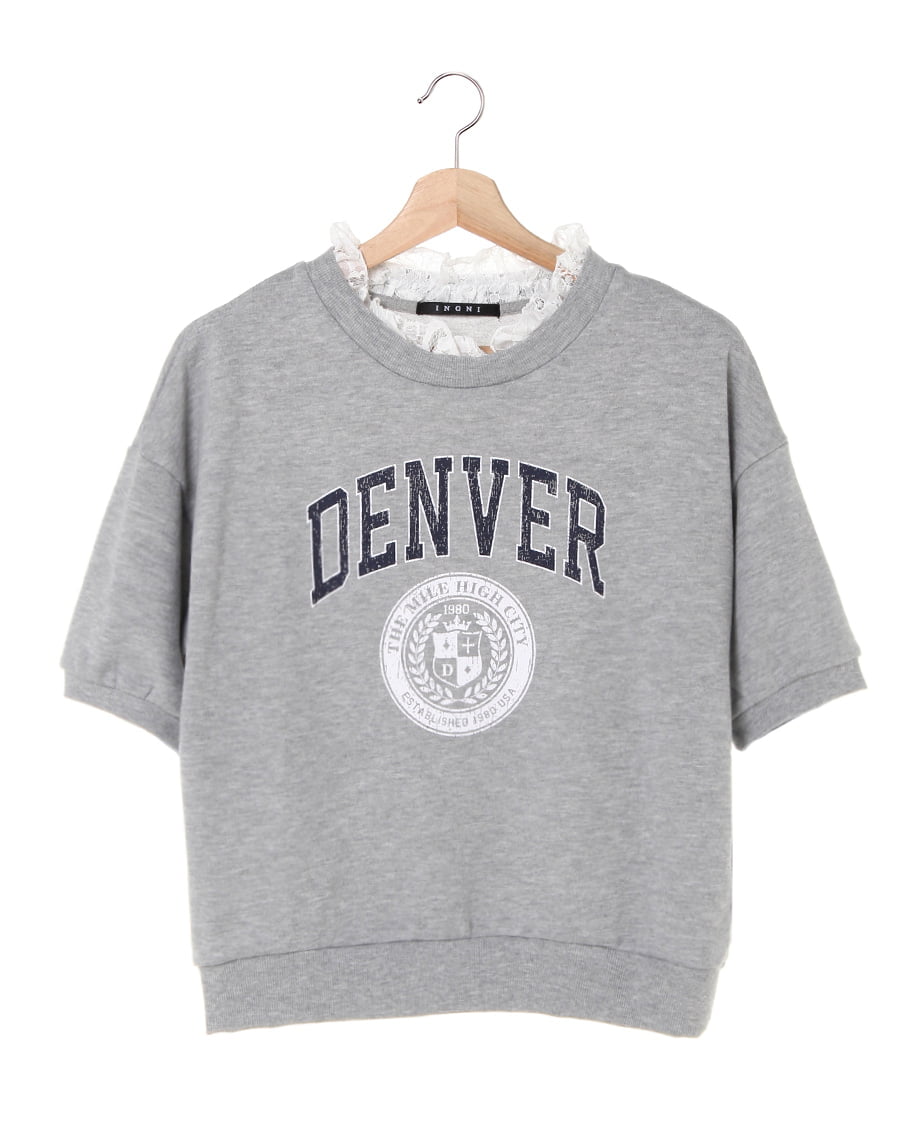 • INGNI(イング) レースレイヤード/カレッジロゴ/スウェットトップス グレー
