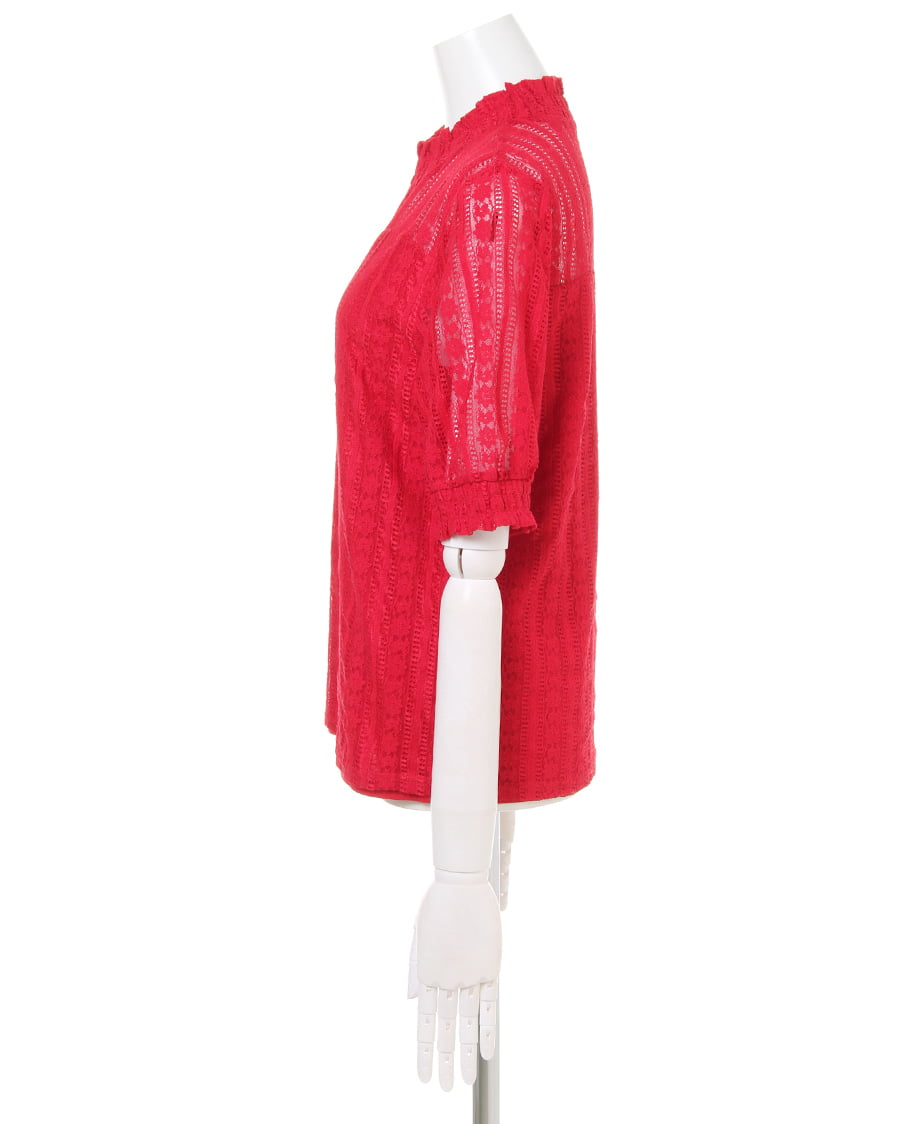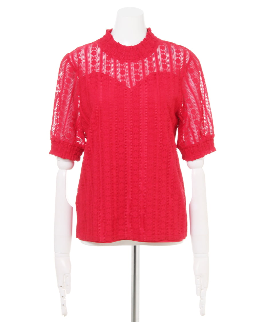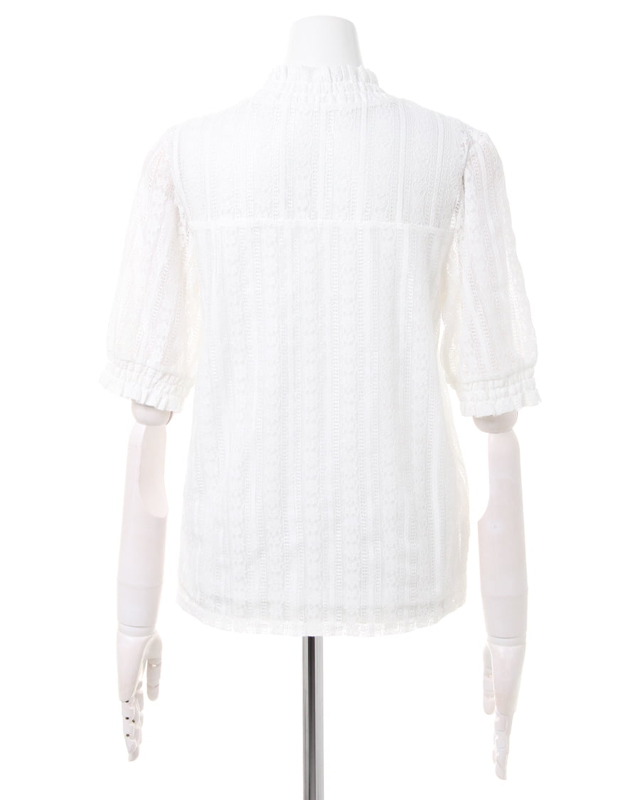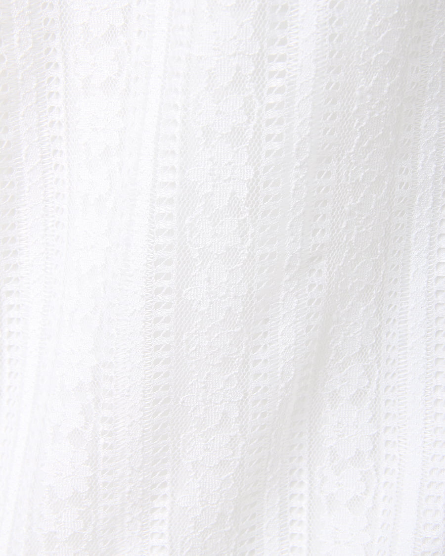 1枚でクラシカルな着こなしが完成するレーストップスは、オンオフ問わずに活躍するおすすめアイテム。バスト下に裏地を貼り、着るだけでまるでベアトップを重ねたかのようなデザインに仕立てています。繊細なストライプレースからほんのり透ける肌が上品でフェミニンな印象。すっきりとしたボディでカーディガンやジャケットのインとしても重宝します。