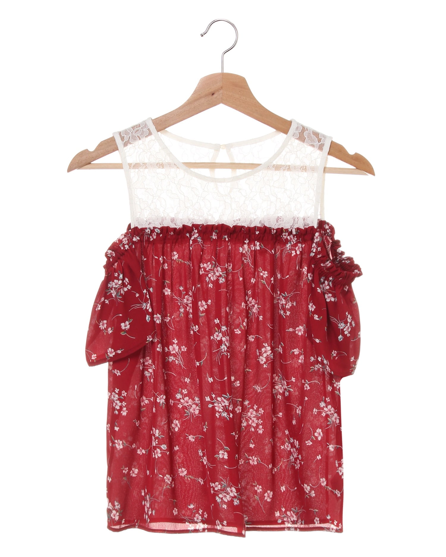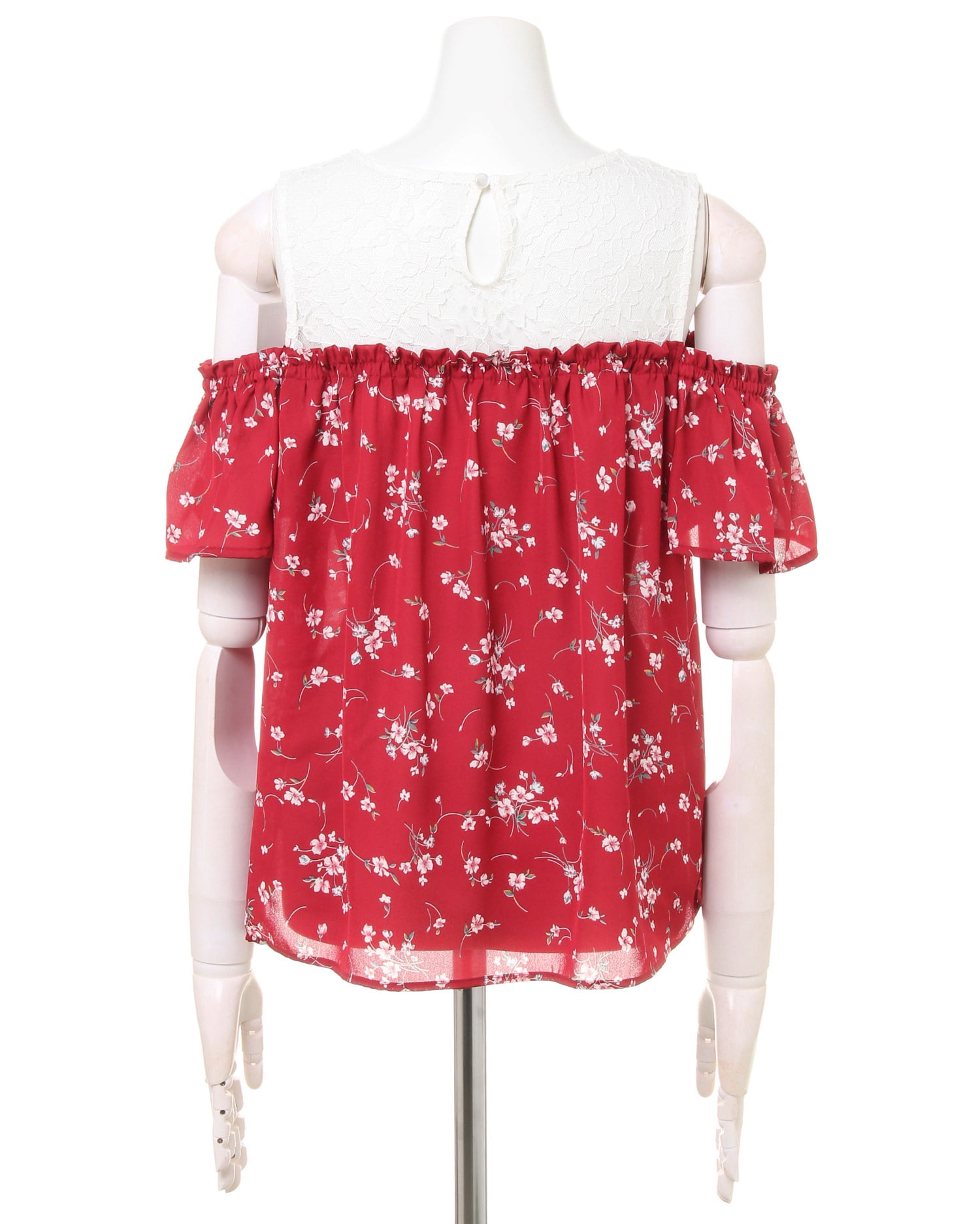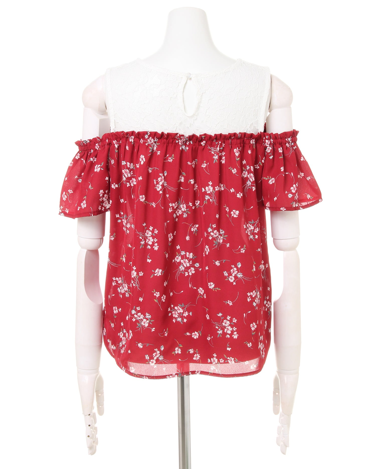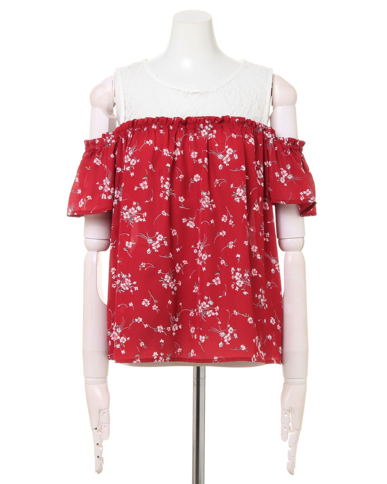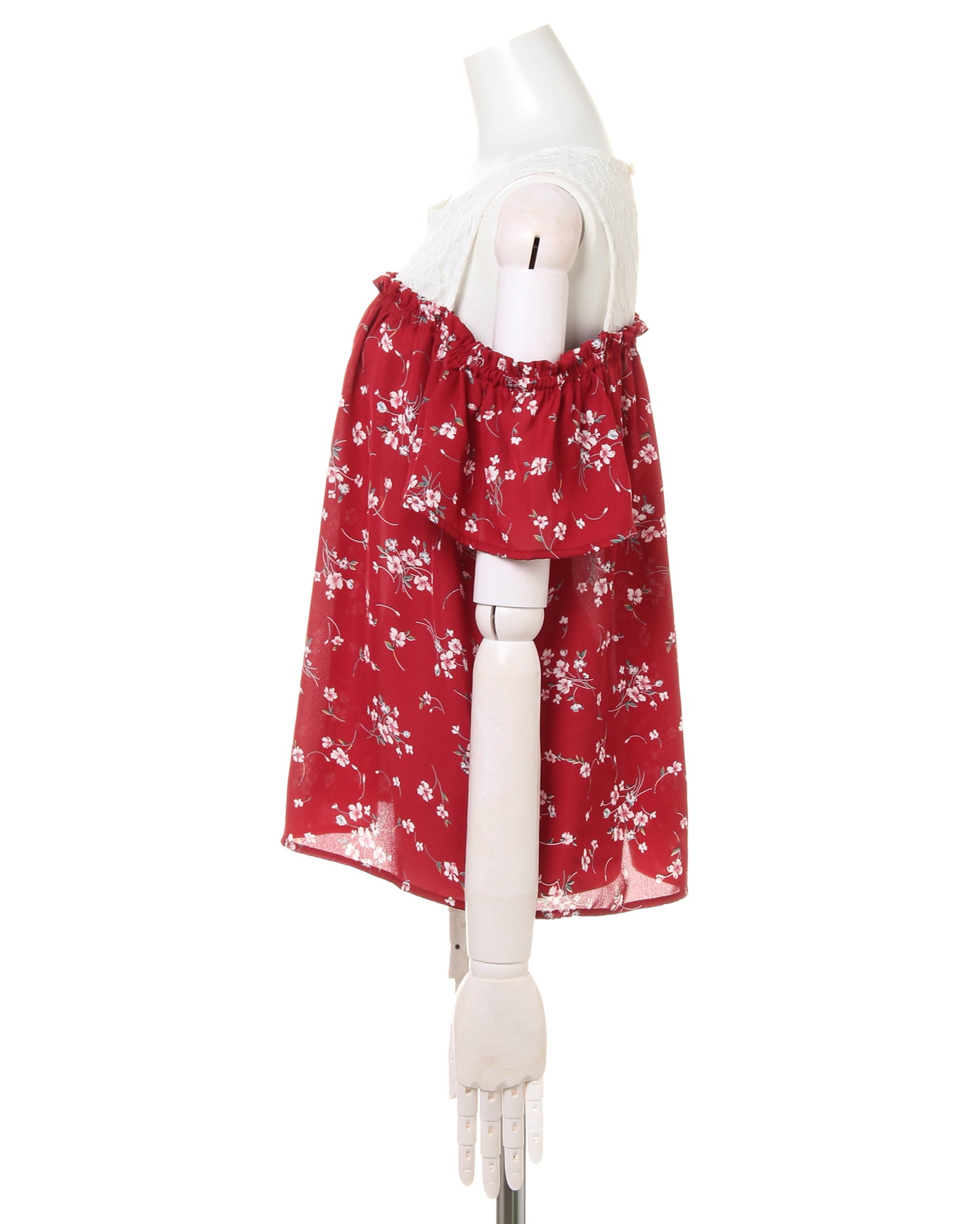 注目のレイヤード風スタイルを叶えるレースと花柄のトップスは、肩開きデザインでヘルシーな肌見せを演出。繊細なレースや可憐な花柄がガーリーな女性らしい印象をメイク。1枚で清楚なコーデを叶えるデザイン性の高い存在感のあるアイテムです。涼しげなルックスは、これからの季節デイリー使いにも重宝します。