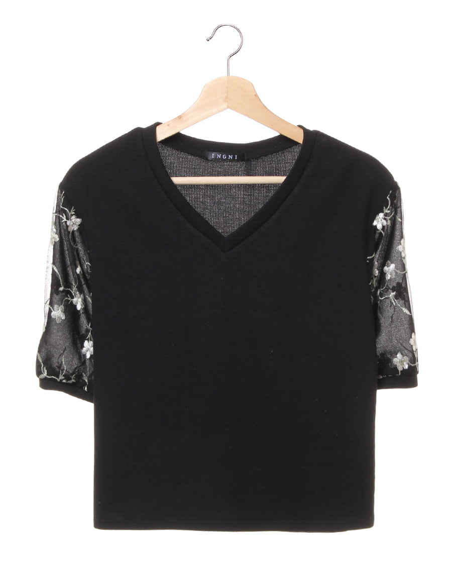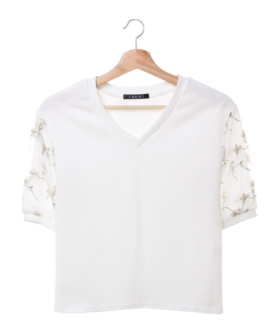プレーンで着回ししやすいシルエットに、チュールとフラワー刺しゅうを落とし込んだボリューム袖がトレンドライクなトップス。絶妙な袖丈がコーディネイトに抜け感をプラス。しっとり柔らかいサカリバ生地は伸縮性もあるのでアクティブな動きも補う優れもの。清楚な雰囲気でオンオフ問わず使える万能アイテムです。